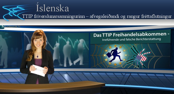 TTIP fríverslunarsamningurinn – afvegaleiðandi og rangur fréttaflutningur Í dag fjöllum við um hinn fyrirhugaða viðskipta- og fjárfestingasamning ESB og Bandaríkjanna,“ hinn svonefnda TTIP. TTIP er fríverslunarsamningur sem er verið að semja um þessa dagana á milli ESB og Bandaríkjanna. Samkvæmt Karel de Gucht fyrrum viðskiptastjóra ESB sem leiddi samningaviðræðurnar um TTIP fram í okt. 2014, þá er þetta samkomulag vaxtarhvetjandi, skapar auknar tekjur og hundruð þúsunda nýrra starfa. TTIP er lofað í hástert af stjórnmálamönnum og fyrrum viðskiptafulltrúum - eins og t.d. Ulrich Grillo forseta sambands þýska iðnararins - sem nýrri verslunaruppsveiflu og kostnaðarlausu atvinnueflandi hagvaxtarverkefni. Angela Merkel kanslari Þýskalands varar við seinagangi í samningunum við TTIP og vill berjast fyrir þeim með húð og hári þrátt fyrir allan mótbyr. Hún óttast að Þýskaland og Evrópa munu draga lappirnar í alþjóðaviðskiptum ef TTIP- samkomulagið gangi ekki eftir. Þar styðst hún við rannsóknir sem renna stoðum undir jákvæð áhrif TTIP. En sérfræðingar draga slíkar spár í efa. Einn af þekktustu viðskiptahagfræðingum heims, Jagdish Bhagwati, prófessor við háskólann í Columbía - segir að forsendur sem þessar rannsóknir byggi á, séu í meira lagi vafasamar. Því var t.d. haldið fram að á milli Þýskalands og USA ykjust viðskipti um heil ótrúleg 80 % og að engar yrðu gengissveiflur. IFO, leiðandi evrópsk efnahagsrannsóknarstofnun sem þýska ríkisstjórnin lét vinna fyrir sig rannsókn um áhrif fríverslunarsamningsins, studdi þessar ofurbjartsýnu rannsóknir engan veginn. Prófessor Gabríel Felbermayr, aðalhöfundur allra þýskra rannsókna um TTIP, segir að bjartsýnustu spár sæu einungis fram á 0,4% atvinnuaukningu. Svo vitnað sé í hann sjálfan: „Það eru stjórnmálin og efnahagsráðuneytið sem selur þessi lágu gildi sem atvinnukraftaverk.“ Hann ásakar ennfremur ríkisstjórnina og Evrópusambandsráðið um ójafnvægi í upplýsingastefnu. Hún lofi ESB 120 milljörðum evra hagvexti. En Felbermayr segir að í raun þýði þessi ofurtala ekki nema örlítinn vöxt, rétt um 0,5% vöxt á 10 árum. Fyrsta virkilega hlutlausa rannsóknin á afleiðingum fríverslunarsamningsins var unnin af GDAE „Global Development and Environment Institute“ við bandaríska Tuffs háskólann. Niðurstaða þeirra reynist hörmuleg fyrir Evrópu: 583.000 atvinnutækifæri myndu glatast innan Evrópusambandsins til ársins 2025. Fækkunin kæmi harðast niður á Þýskalandi, Frakklandi og norðurevrópsku löndunum. TTIP hefði það í för með sér að útflutningur drægist saman með þeim afleiðingum að brúttóframleiðsla innanlands, skattatekjur og nettóinnkoma heimilanna minnkaði. Sér í lagi þeir launþegar innan ESB sem sinna ófaglærðum störfum, fyndu fyrir launaþrýstingi. Hinsvegar lítur niðurstaðan miklu betur út fyrir Bandaríkin. Vegna TTIP myndu þau skila hagnaði á öllum sviðum. Enn annar hópur sem myndi hagnast á TTIP eru fjölþjóðlegu stórfyrirtækin og hlutabréfamarkaðirnir. Þeir fá að þrútna sérstaklega mikið út, nokkuð sem færir spákaupmönnum og sérstaklega hinum ofurríku mikinn ágóða í aðra hönd. Kæru áhorfendur, takið þið eftir því hvernig algerlega er sneytt framhjá hinum alvarlegu áhrifum TTIP í opinberri umræðu og í fréttaumfjöllun kranafjölmiðlanna? Þess í stað afvegaleiðir opinber umræða okkur burtu frá hræðilegum afleiðingum samningsins fyrir Evrópu, t.d. með því að lofa því að hinar svokölluðu klórhænur, sem dýft er ofan í klórbað í Bandaríkjunum, fái ekki innflutningsleyfi til Evrópu. Né heldur genabreyttur mais - og að ekki verði snert við neytendalöggjöf. Ennfremur er því lofað að hinir svonefndu gerðardómstólar megi hvorki ráðast gegn landslögum né evrópulögum. Samkvæmt grunnlöggjöf TTIP er gert ráð fyrir að þessi alþjóðlegu og óháðu dómsstig séu æðri landsdómi. Eins er því lofað að hægt sé að undanskilja fjárfestavernd. Með fjárfestavernd er meint að ef erlendum fjárfestum finnist þeim mismunað af lögum og reglugerðum ríkja, geti þeir ákært. Þessum loforðum er nú hampað gagnvart Evrópubúum sem miklum sigri samningastjórnarinnar. Við sjáum síðan til hvort þau rati rétta leið inn í lokagerð samkomulagsins. Yfir hinu er hinsvegar þagað að þegar upp er staðið munu launþegar ESB verða láglaunaþegar á mörgum svæðum, og geta álitið sig mikla hamingjuhrólfa að hafa yfir höfuð atvinnu. Þessi blekkingarvefur er bara mögulegur vegna einhliða, ónægra eða rangra upplýsinga til fólks frá stjórnmálamönnum og fjölmiðlum, sem mögulega hafa ekki heill þjóðarinnar að leiðarljósi. Hjálpa líka þú til við að koma slíkri þróun sem fyrst í ljósið – sendu kvartanir þínar inn til Kla.TV og breiddu þessar fréttir út.