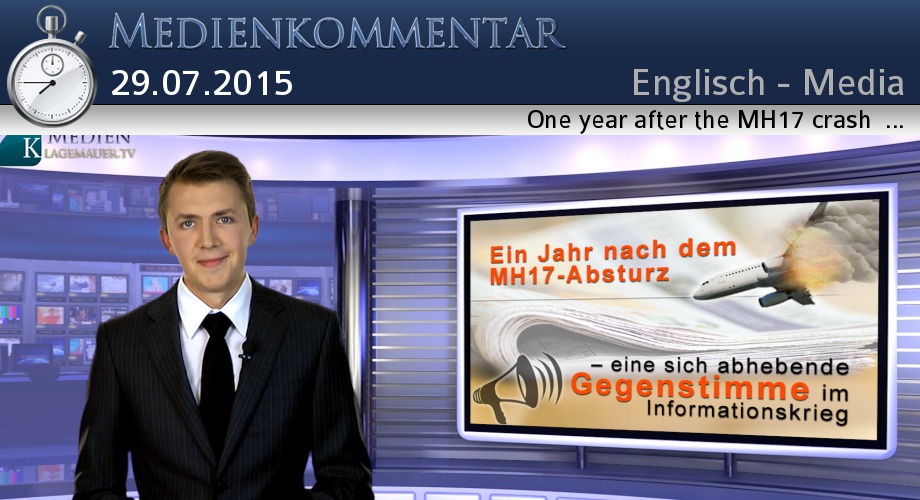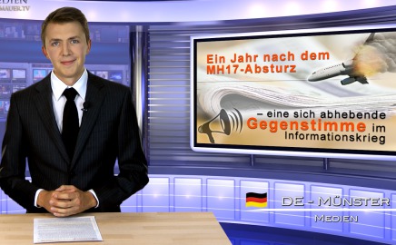 Valued viewers, I am happy to greet you today from studio Muenster, Germany. One year ago, on July 17th, the Malaysian passenger airplane, MH17, crashed in Eastern Ukraine. All 298 passengers including 192 Dutch and 43 Malaysian citizens were killed. The Ukraine and Russia are continuing to blame each other. The Swiss national television news program “10 to 10”, (SRF) from July 17th, 2015 reported the following. I quote: “The question of who is responsible has not yet been officially clarified, but there are several indications that the machine was shot down by “Russian supported separatists.” The program then went on to defame Russian media who supposedly are spreading their own version of the story and are allegedly all conform. Also the Russian people reputedly do not question their view of the world.