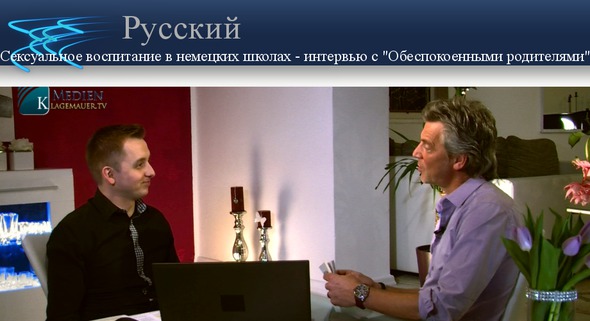 Сегодня речь пойдёт о сексуализации в немецких школах, точнее говоря, о родителях, которые этим сильно обеспокоены, о движении «Обеспокоенные родители». Мы рады приветствовать сегодня Маттиаса Эберта, одного из инициаторов этого движения. Спасибо. Спасибо, что вы пришли, чтобы рассказать нам об этом. ...Мы хотим просто начать с вопроса – «в то время начинания, у истоков движения «Обеспокоенные родители», всё было так же сенсационно, как в последнее время об этом сообщается в интернете, в газетах?» Это началось сенсационно, а именно, не так громко, но это было так... У одного нашего друга есть дочка. И эта девочка в начальной школе ушла с урока по сексуальному образованию, вышла из класса. Учителя не хотели это акцептировать. Но мой друг поддержал свою дочь и сказал: «Минутку, если моему ребёнку становится плохо на уроке, заметьте, на уроке по сексуальному образованию в начальной школе, то мой ребёнок имеет право уйти с урока». И это был пункт, где потом просто пришёл штраф, и вследствие этого всё началось. Вы уже сообщали о том, когда родилась эта волна, волна возмущения. В январе 2014-го года мы организовали первую демонстрацию, и затем началось... Мы заметили, что это заботит очень многих людей, – некоторых это уже коснулось, и что здесь огромная нужда, чтобы держаться именно вместе и этим создать единый голос. По-видимому, отдельных родителей в этой системе не слышат. Да. И с тех пор это развивалось, без преувеличений, беспрерывно. Год 2014-ый был годом демонстраций. Мы были в различных землях Германии. В одних землях с большим, в других – с меньшим числом родителей. В зависимости от того, насколько известна была там эта тема. Как бы вы назвали эту нужду, суть нужды «Обеспокоенных родителей?» На самом деле их желание, чтобы эта тема была обсуждена публично; чтобы вообще это было затронуто в разговоре – что конкретно показывают детям на занятии. Чтобы и родителей спросили: «Это вообще вы считаете нормальным?» Поскольку согласно конституции родители обязаны воспитывать детей, – обязаны, значит и имеют право. Но им не позволяют выполнить этот долг. В принципе, говорят так: «Родители и даже учителя, держитесь подальше от классной комнаты. Сейчас в школу придёт педагог извне. И он будет учить их «этому» делу. А мы считаем, что это очень опасно, потому что там содержатся вещи, которые действительно более чем сомнительные». В настоящее время мы слышим слова, которыми Вас называют (я цитирую): «гомофоб», «сексистские подонки», «евангельские амфибии», «лица для пощёчины». Против Вас идёт травля, Вас порочат и Вам угрожают. Почему такая грубая реакция? Да, этот вопрос мы себе тоже задаем. Почему эта грубая реакция прежде всего исходит от определённых групп людей, а именно от ассоциации гомосексуалистов в Германии? Почему эти люди – гомосексуалы, транссексуалы, различные другие люди – думают, что это касается их? То есть, люди из различных сексуальных групп. Когда мы только встаём за наших детей и пытаемся защитить наших детей от конфронтации с сексуальными практиками, почему эти люди думают, что это нападки на них? Почему люди из различных сексуальных групп чувствуют себя обиженными? Этот вопрос мы задаём себе весь последний год. Полиция тоже задаёт себе этот вопрос. На некоторых демонстрациях нас очень жёстко атаковали. Полиция это тоже не могла понять – и