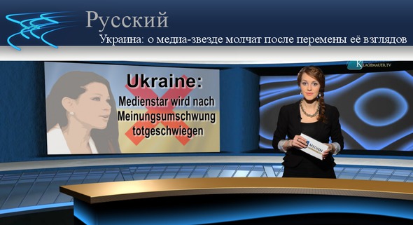 Таким образом, она стала своего рода рекламой в западных СМИ. Мишель Обама удостоила её даже международной награды «Храбрые женщины». Но когда в Донбассе в сентябре 2014 года Руслана Лыжичко стала свидетельницей обстрела её собственных земляков, то ситуация изменилась. Певица апеллировала к правительству в Киеве с просьбой о прекращении огня. С этого момента о ней замолчали почти все СМИ! Это ещё одно доказательство того, что западная пресса явно не заинтересована в объективной подаче информации. Также посмотрите в связи с этим нашу передачу от 1-ого ноября 2014 года: "Объективные сообщения прессы? – Рассказ о пережитом Русланой Лыжичко". Ссылку вы можете увидеть на экране. Желаю вам доброго вечера. До свидания.