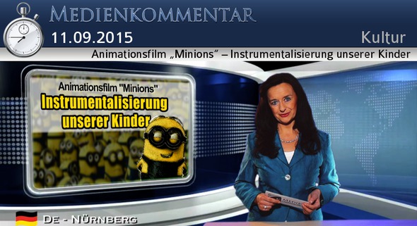 Liebe Zuschauer, der US-amerikanische 3D-Animationsfilm „Minions“ ist also alles andere als ein harmloser, lustiger Kinderfilm. „Minions“ wird als taktisches Kampfmittel zur Manipulation unserer Kinder eingesetzt! Helfen Sie deshalb bitte mit, unsere Kinder vor dieser unterschwelligen und perfiden Einflussnahme – gegen die sie sich selbst noch gar nicht wehren können - zu schützen! Sprechen Sie mit Freunden und Bekannten und Nachbarn über die tieferen Zusammenhänge! Ich danke Ihnen.