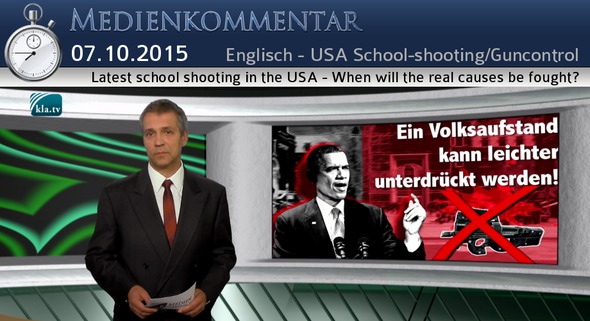 On October 2nd 2015 at least 10 people were killed in a shooting at a college in Oregon, USA. President Obama expressed shock and spoke of an increasing numbness in the US-society concerning such incidents. In his words - I quote: “We are the only advanced country on earth that experiences such mass shootings every few months...The reporting is routine, my response here... ends up being routine.” And that is true. For just as with prior attacks Obama again complained about what he views as too lax weapons legislation and demanded its tightening. But the question remains: is this really tackling the problem at its roots? And will this actually get rid of the problem? Today’s broadcast focuses on this. Since such shootings happen again and again it is certainly legitimate to think about weapons legislation. However: Is it not alarmingly short-sighted that no systematic examination is being done as to why it is that young people get the idea initially to enter their universities and schools and cold bloodedly murder their classmates? What must have happened to a person, what is going on inside a person who is ready to commit such horrible acts? One possible cause for the readiness to cold blooded murder may be the apathy and deadening caused by mass media programing, especially in our so-called “entertainment media”. We refer to the research of Karl C. Mayer, a specialist in neurology and psycho therapeutical medicine in Heidelberg, Germany. Mayer demonstrates that the consequences of all the violence conveyed in the entertainment media has been documented in 3,500 studies so far. Mayer summarizes the results as follows: “The vast majority of these studies’ authors come to the conclusion that there is a correlation between the amount of violence seen on television by children and the possibility of aggressive behavior with these kids.” Already in 1992 a child in the USA has seen an average or 200,000 violent acts and 40,000 murders on TV before he turns 18. It is interesting that according to Mayer it is not rare the perpetrators are displayed as attractive and the victims as ugly. According to him the identification with the perpetrator is strengthened to a far greater extent than with the victims. Our mainstream media, movies and DVDs as well as the computer games are very clearly co-responsible for the increasing brutality and deadening as well as for promoting mass shootings. There are still other causes for personality changes which greatly increase the potential for violence and cold blooded mass shootings: Experts judge the use of psychotropic drugs to be the number one cause. Coming up in another broadcast soon we’ll report on the profound research results of psychiatrist Dr. David Healy. Healy clearly states based on thorough research that over 90% of mass shootings at schools are carried out under the influence of psychotropic drugs. In light of these many correlations and evidence it is quite astonishing that President Obama does not immediately move in and tackle the entertainment media industry or the pharmaceutical industry instead of weapons laws. A possible explanation for tightening weapons legislation certainly can be seen in the discontentment of US-citizens. Today, 6 years after Obama’s election for president, the US-citizens feel severely disappointed by Barak Obama who had sympathy values up to 80% in his first year. In a “USA Today” magazine opinion poll in spring of 2015 Obama - with a solid lead before George W. Bush - was chosen to be the worst president of the USA since 1945. While he is causing wars all over the world, his country is impoverishing. The citizens and the state are severely in debt. Unemployment figures are sky-rocketing and are artificially pushed down via statistical tricks. 45 billion US-citizens - so about 15% of the whole US-population - have to stand in line for meal vouchers. The US-government knows very well that the citizen’s pain threshold has long been surpassed and it seems that the government has been preparing already quite some time for a nation-wide uprising. The national Federal Emergency Management Agency recently built around 800 detention camps - so-called FEMA-Camps - and bought billions of plastic coffins . Apropos weapons: the Department of Homeland Security have weapons and 1,6 billion shots of ammunition at their disposal. This is so much that it is enough for a 20-year-long war according to Forbes magazine. This gives reason to suspect that not only President Obama but also the whole US-administration have good reason to work towards disarming the population and to enact new laws making the - up until now legal - possession of weapons illegal. A disarmed population could easily be brought under control in any uprising.