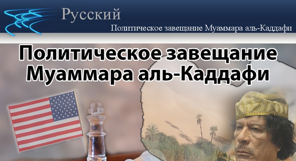 Затем последует полное так называемое «Политическое завещание Муаммара аль-Каддафи», которое он сделал 5 апреля 2011 года. То и другое было опубликованно 19 марта 2011 года, после того, как начались воздушные налеты НАТО и систематическая бомбардировка Ливии.