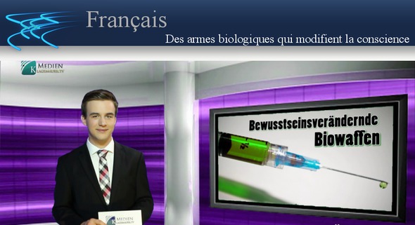 Est-ce qu’on ne chercherait pas à diminuer durablement notre sentiment spirituel par des armes biologiques qui modifient la conscience et par la vaccination obligatoire de masse ? Avec cette question je vous souhaite la bienvenue à une nouvelle émission depuis notre studio de Sarebrück. Bonsoir ! Il ressort d’une vidéo de 2005, qui a filtré du Pentagone, et d’un autre document (Quarterly FunVax Review du 1er juin 2007), que dans le cadre d’un projet du nom de « FunVax », des expérimentations sur l’homme auraient eu lieu depuis au moins 8 ans avec des vaccins qui modifient la conscience. Depuis 2007 ou même avant, des virus transgéniques des voies respiratoires auraient été propagés comme une pandémie par ces vaccins. Ce document évoque les méthodes suivantes utilisées pour tester la propagation : La dispersion à haute altitude (Chemtrails), la dispersion par l’eau, la transmission par des insectes, la propagation par un objet sur le sol (comme un véhicule ou une bouteille)… et la propagation d’infections par l’alimentation (la viande ou les fruits et les légumes). Lors d’une infection des voies respiratoires ces virus, après avoir passé la barrière hémato-encéphalique, inhiberaient ou diminueraient les prédispositions génétiques – surtout spirituelles -. En faisant cela, on vise notamment le gène « VMAT2 », qui a la réputation, selon les biologistes moléculaires, d’être le gène responsable pour les sensations et les expériences spirituelles et religieuses de l’homme. Si ces déclarations correspondent à la vérité, il s’agirait d’une vaccination forcée dans le but de manipuler de manière ciblée justement les personnes spirituelles et religieuses. Ne restez pas passifs face à de telles informations et ne soyez pas spectateurs de ces décisions sans rien faire. Chacun de nous peut faire bouger quelque chose ! Au revoir !