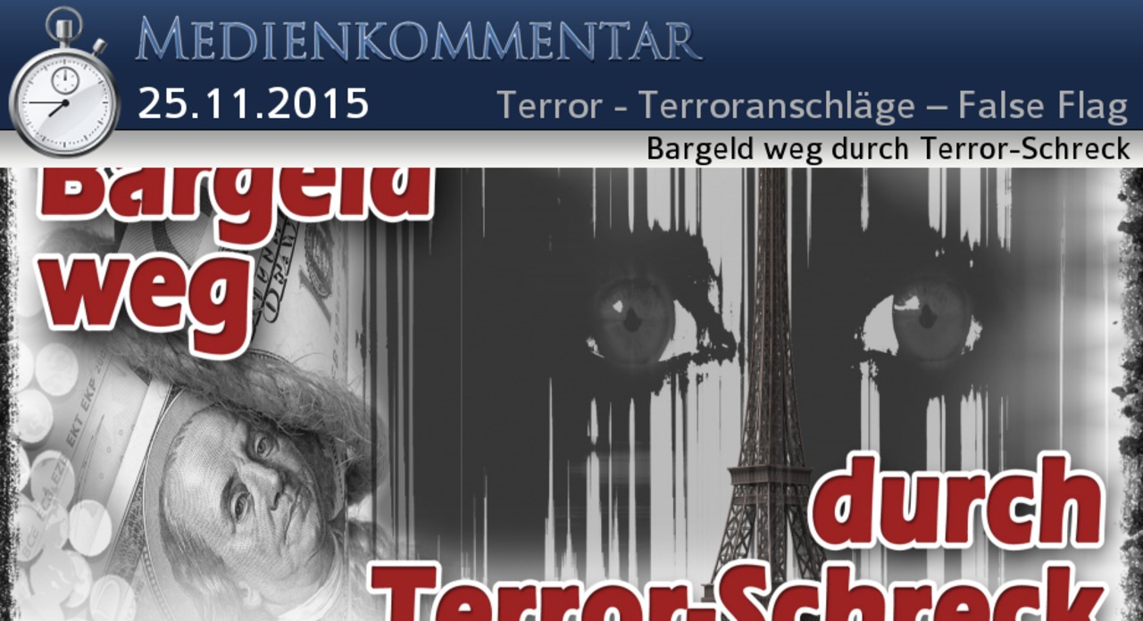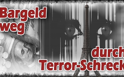 Unter der Schockwirkung der schrecklichen Terroranschläge von Paris werden die Bürger diese vermeintlichen Notstandsgesetze vermutlich widerstandslos abnicken. Dann hat die psychologische Terror-Kriegsführung bereits bestens funktioniert. Was Tausende überredende Medienkampagnen zur Bargeldabschaffung bislang nicht hinbekamen, gelingt nun voraussichtlich zeitnah mit einem kurzen Handstreich: Bargeld weg durch Terror-Schreck.