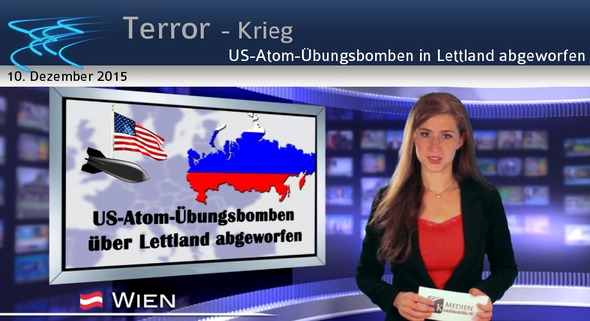 Guten Abend. Die New York Times gab am 23.6.2015 bekannt, dass neun Atom-Übungsbomben über Lettland abgeworfen wurden, nahe der russischen Grenze mit baltischer militärischer Unterstützung. Das Ganze wurde gerechtfertigt mit der Notwendigkeit, einem Erstschlag der Russen zuvorzukommen. Und natürlich muss auch der US-Verteidigungsminister eine Europa-Reise antreten, um vor „den bösen Russen“ zu warnen. Unseren Medien ist das natürlich keinen Artikel wert. Dieses Szenario einmal umgekehrt gedacht: Russland würde rund um die USA Militärbasen errichten, dort Atombomben testen, in den Medien die Bedrohung durch die USA breittreten und mit der gleichen Selbstverständlichkeit alles rechtfertigen! Wie war das damals in der Kuba- Krise? Bei der Einfuhr russischer Atom-Raketen nahe der US-Grenze hätte es beinahe einen dritten Weltkrieg gegeben – eine gefährliche Gewalt-Spirale offenbart sich also: Wird es diesmal „unausweichlich“?