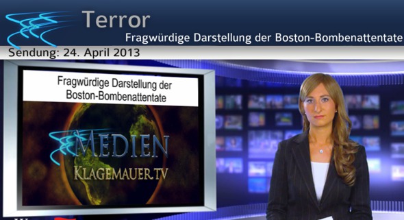 Nach den Bombenattentaten am Boston-Marathon von vergangener Woche am 15. April 2013, gab es ab Donnerstag abend und am Freitag eine wilde Verfolgungsjagd auf zwei mutmassliche Attentäter. Es handelte sich dabei um zwei Brüder tschetschenischer Herkunft. Mit Schlagzeilen wie: "9.000 Polizisten jagten Bomber von Boston." hielten die Medien die Welt in Atem. Man stelle sich dieses Szenarium einmal vor; Da jagen also sage und schreibe 9.000 Polizisten die zwei Tatverdächtigten, evakuieren Häuser und verhängen eine Ausgangssperre über der Grossstadt. Was geht da ab? Während der Verfolgungsjagd wird der ältere so schwer verletzt, dass er im Spital an mehreren Schusswunden, Verbrennungen und anderen Verletzungen stirbt. Der Jüngere, ebenfalls verletzt, flieht weiter und wird am Samstag, 20.04.2013 gefasst. Gemäss neusten Meldungen kann er wahrscheinlich nie mehr reden. Man wähnt sich in einem Hollywood-Streifen zu befinden, doch laut den Medien entspricht dies den Tatsachen. Während die Behörden hoffen, dass der Verdächtige Namens Dschochar Zarnajew überlebt um das Tatmotiv zu klären, behauptet die Mutter der Beiden, dass ihre Söhne mit 100%iger Sicherheit hereingelegt wurden und weist daher hin auf einen Komplott. Müssen die zwei tatsächlich als Sündenböcke herhalten, um die Bevölkerung über die wirklichen Hintergründe der Attentate hinwegzutäuschen? Angesichts der immer mehr zu Tage tretenden Enthüllungen über verübte Bombenanschläge von Geheimarmeen im Verbund mit Geheimdiensten ist es nicht auszuschliessen, dass die Beiden tatsächlich vom Geheimdienst dazu missbraucht wurden, um die Spur von ihnen weg zu leiten. Der jüngste derartige Skandal wird seit zwei Monaten gerade in Luxemburg behandelt. Dazu zu einem späteren Zeitpunkt mehr hier auf Klagemauer.tv. Zumindest ist es einmal mehr sehr bedenklich, dass die Mainstream-Medien uns kategorisch die aufschlussreichsten Augenzeugenberichte vorenthalten. Zum Beispiel diesen des Langlauttrainers Alastair Stevenson, welcher folgendes erzählte: „Zu Beginn der Veranstaltung, im Athletendorf, standen Leute auf den Dächern, die von dort aus das Dorf beobachteten beim Start. Es gab Hunde mit ihren Hundeführern, die nach Sprengstoff schnüffelten. Man sagte uns über Lautsprecher, wir sollten uns keine Sorgen machen, das sei nur eine Übung. Vielleicht war es nur eine Übung, aber ich habe so etwas noch nie gesehen – bei keinem einzigen Marathon, den ich gelaufen bin. Verstehen Sie, es gab mir zu denken, dass es das einzige Rennen war, bei dem Hunde nach Sprengstoff suchten und dass es der einzige Ort ist, an dem es tatsächlich Detonationen gab.“