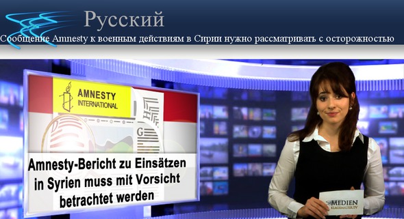 Как репортаж Amnesty 2010 года о якобы тяжёлом положении населения в Ливии служил «моральному оправданию» войны в Ливии, так и регулярно повторяющиеся сообщения о зверствах сирийского правительства Башар аль-Асада подливают масло в огонь конфликта в Сирии. Amnesty подняла тревогу эффективно освещая в СМИ, что якобы совершаются военные преступления и применяется хлористый газ в нападениях сирийской авиации, и этим усилила эскалацию в Сирии. После большинство этих сообщений оказались ложными и никогда не были доказаны. Детали к этому вы найдёте в передаче от 15 октября 2015 года