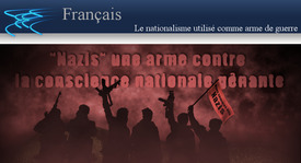 De plus en plus de personnes ont peur d’une nouvelle grande guerre sur le sol européen. Sans l’accord du peuple on ne peut pas faire des grandes guerres. C’est pourquoi il faut reconnaitre qu’avant chaque grande guerre, il y a une guerre de l’information. Guerre de l’information – Qu’est-ce que c’est ? Qui fait ça? Et qui en profite ? Oui, c’est très simple: Dans son discours Stratfor en février 2015, George Friedman a admis ouvertement que les États-Unis ont l’intention depuis plus de 100 ans d’empêcher la Russie et l’Allemagne d’associer leurs forces. Regardez aussi notre émission « Stratfor trahit la stratégie américaine en Ukraine » du 16 avril 2015. George Friedmann, qui est considéré comme un maître à penser des stratèges de guerre américains, a ouvertement déclaré que les États-Unis maintiennent et renforcent leur statut de pouvoir de suprématie en déstabilisant les populations ou les pays qui sont leurs rivaux et en les excitant les uns contre les autres. Ils le font au moyen d’informations délibérément fausses dans les médias, mais aussi de préférence par le financement de groupes terroristes choisis au moyen desquels ils déstabilisent intentionnellement des forces menaçantes pour eux. C’est exactement ce que le chef du think-tank américain, c’est-à-dire de l’équipe des conseillers militaires, a admis sans aucune gêne. Le but de toutes ces opérations est que les peuples acceptent la guerre. Par des propagandes délibérées, par exemple sur des atrocités de guerre, des événements terroristes dangereux, des attentats etc., des peuples entiers sont terrifiés. Des scénarios de menaces existentielles sont attisés délibérément et émis jusqu’à ce que même les peuples qui refusent la guerre en viennent à demander des interventions militaires, c’est-à-dire que des mesures soient prises. Les stratèges de guerre visent exactement ce cri : Dès lors leurs militaires peuvent recourir à des armes de très grande ampleur. Mais cela montre a contrario que des protestations populaires et des refus de la guerre constituent la barricade fâcheuse que tous les stratèges de guerre doivent surmonter. En bref : Sans le peuple, pas de guerre. Car en règle générale au front des combats, ceux qui saignent, ce ne sont pas ceux qui ont manigancé et déclenché nos guerres, mais ce sont les civils dupés, les maris, les fils et pères de famille qui ne se doutent de rien. Le court métrage qui suit démasque une arme stratégiquement efficace qui est utilisée avec succès depuis des décennies dans la guerre de l’information. « Nazis » : une arme contre la conscience nationale gênante La découverte des efforts en vue d’un nouvel ordre mondial avec son gouvernement mondial unique a longtemps eu la réputation d’une théorie de conspiration bizarre jusqu’à ce que son existence apparaisse au grand jour de façon indéniable de la bouche même de ses opérateurs. On appelle aussi « globalistes » les architectes de ce nouvel ordre mondial. Pourquoi globalistes ? Pour la simple raison que dans la pensée de ces personnes qui travaillent à l’Etat mondial unique, il faut qu’il n’y ait plus de nationalités typiques. Un seul gouvernement doit régner sur le monde entier. Le monde ne doit plus être partagé en différents Etats nationaux, mais pour ainsi dire en districts mondiaux. Toute conscience nationale patriotique devient au regard de tels idéologues un ennemi, un empêchement de leur « idée globale du salut ». Celui qui tient pourtant à sa conscience nationale contre leurs plans d’hégémonie, et encore pire – à sa fierté nationale – deviendra un ennemi dangereux. Mais comment fait-on disparaître la conscience nationale, alors que celle-ci a une tradition de plusieurs millénaires ? Encore plus difficile : Comment maîtrise-t-on la fierté nationale, alors qu’elle se manifeste tout simplement comme un instinct de l’homme ? Tout simplement : On la diabolise. On apprend au monde que toutes les guerres du passé ont leur origine principalement dans la conscience nationale et dans la fierté nationale. On cache intentionnellement les vraies causes des guerres passées, les intérêts de pouvoir, les pulsions sataniques de rapacité et de despotisme et tout ce genre de choses. C’est seulement leur propre version de la religion comme la seule légitime qui intéresse ces architectes du nouvel ordre mondial ; la responsabilité des guerres passées doit donc évidemment aussi avoir son origine dans des conflits religieux sans fin. Avec cette diabolisation on rassemble très vite beaucoup de monde autour de soi, parce que les gens aiment décharger leur frustration et leur colère accumulée sur des boucs émissaires désignés. Comme il est impossible de diaboliser d’un seul coup des nations entières ou des grandes communautés religieuses, on commence en petit. En ce qui concerne la religion, c’est le dénigrement d’une secte. On prend n’importe quel groupe religieux marginal sans défense, on fait d’un point faible tout un scandale en mettant ce groupe dans le même sac que des groupes terroristes camouflés en groupes religieux comme par exemple Al-Qaïda ou d’autres groupes semblables. Ce faisant on accentue sans arrêt le danger fondamental de la religion et en outre toutes sortes de guerres du passé, on les éclaire sous cette même optique. On le fait jusqu’à ce que la religion soit devenue dans la conscience du peuple la source de presque toutes les guerres du passé. Mais revenons au cœur du sujet. Comme il est impossible de diaboliser d’un seul coup la fierté nationale de peuples entiers, on commence aussi en petit. Comment cela se voit-il en pratique ? Ces jours-ci dans le journal USA-today on peut lire en grandes lettres (je cite) « Le bataillon bénévole ukrainien AZOW est plein de Nazis ! » Mais quelques lignes plus loin, il est écrit en pe