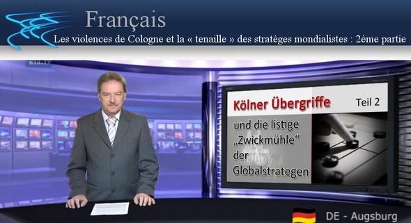 Après avoir décrit les faits sous différents angles dans la première partie de notre émission sur les abus contre des femmes dans la nuit du nouvel an, dans cette deuxième partie nous examinerons la question suivante : Ces incidents feraient-ils vraiment partie d’un plan plus vaste, habilement mis en œuvre, et porteur d’une importance stratégique de grande ampleur ? Seraient-ils comparables aux abus sexuels et viols en masses dont furent victimes les femmes qui manifestaient sur la place Tahrir dans le centre du Caire le 10 juillet 2013 ? Car alors ce ne serait pas seulement les violences qui auraient été habilement planifiées à l’avance, mais aussi la manière dont elles ont été publiées. Cela voudrait donc dire que la nouvelle des abus contre des femmes dans la nuit du nouvel an n’est pas parvenue « par hasard » au public, au travers d’internautes qui exprimaient leur mécontentement sur les réseaux sociaux ou bien parce que des cas isolés de la presse régionale les ont évoqués, mais que ces « fuites d’informations » avaient été habilement calculées. L’accusation souvent entendue, selon laquelle les médias auraient intentionnellement passé les incidents sous silence, s’avérerait n’être rien d’autre qu’une manœuvre réfléchie d’un bout à l’autre. Et c’est exactement ce dont nous parlions dans l’émission du 11 janvier 2016 en langue allemande – Un « nouvel ordre mondial » qui a deux méthodes d’action : il s’agit apparemment d’une double stratégie des bâtisseurs du « nouvel ordre mondial », d’un coup imparable comme dans une « prise en tenaille » au jeu du moulin. Dans une tenaille, un pion de l’adversaire peut être pris à chaque tour, sans que celui-ci puisse prendre de mesure efficace contre. Ainsi d’un côté on laisse entrer des réfugiés en masse avec la « politique d’accueil », on enjolive les problèmes, on les renvoie à d’autres causes ou on les passe sous silence. Dans les derniers mois cela faisait partie du soi-disant « politiquement correct » de ne pas dire du mal des migrants. Mais d’un autre côté, lorsque des problèmes causés par l’immigration de masse sont dévoilés, on se sert de la deuxième partie de la tenaille : ces problèmes sont instrumentalisés, pour attiser des émotions, ameuter, diviser les personnes concernées, trouver toutes sortes de coupables et instaurer un climat de peur. Et c’est exactement ce qui est en train de se passer, après que l’ampleur des abus a été rendue publique : comme une manœuvre de distraction, pour dévier l’attention du but véritable des tireurs de ficelles. Voici quelques exemples : - Une fois de plus, l’Islam est l’objet de la critique. Le débat au sujet des abus contre des femmes tournerait spécifiquement autour de musulmans et de leur comportement envers les femmes, commente SRF le 8 janvier. La journaliste allemande d’origine turque Kübra Gümüşay estime que le débat actuel est dangereux, qu’il est mené d’une manière très chargée en symbolique, en populisme et en émotion, je cite : - « Le débat tourne autour de l’origine des auteurs. Toujours en soulignant que ce pourrait être des musulmans ou des personnes provenant de pays musulmans. » On suggère sans fondement que les agresseurs seraient sexistes ou violents à cause de leur origine ou de leur religion. Ici aussi on est en présence de ce qu’on appelle le « Combat des cultures ». Celui-ci a pour but de dénigrer fortement les valeurs identitaires, culturelles et religieuses et de suggérer par cela qu’il faut les dissoudre. Voici ce qui doit aplanir le chemin vers un « nouvel ordre mondial ». Voyez à ce sujet nos émissions du 22 novembre 2015 et du 14 janvier 2016 - A la suite de la nuit du nouvel an, il y a eu le 9 janvier plusieurs actions de protestation à Cologne. La police aurait dissout une manifestation de sympathisants de Pegida, qui selon des informations de la police, aurait été constituée d’extrémistes de droite prêts à la violence. Au même moment pourtant, à Cologne, plus de 1 300 personnes ont manifesté majoritairement de manière pacifique contre le racisme et le sexisme. Mais il y avait aussi des partisans de la droite et de la gauche dans la rue. Et c’est exactement ce qui fait partie de la stratégie de - - « tenaille » des stratèges mondialistes. C’est-à-dire mettre les émotions en ébullition, faire descendre les gens dans la rue, divisés en différents camps, jusqu’à ce que s’installe un climat proche de la guerre civile. Mais cette « tenaille » habilement pensée et mise en œuvre va plus loin. Nous traitons de cela dans la troisième partie de notre émission.