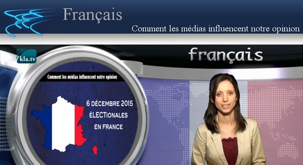 Comment les médias influencent notre opinion Le dimanche 6 décembre ont eu lieu en France les élections régionales. A l’issue du premier tour de ce scrutin, le parti du Front National est arrivé en tête dans plusieurs régions. Cela a eu pour conséquence une mobilisation médiatique à l’encontre de ce parti et ceci ressemblait plus à de l’acharnement qu’à une information objective. C’est ainsi que des slogans ont été répétés sans cesse, en voici quelques exemples : France Inter a parlé de « la menace Front National », du « parti raciste », Le Figaro et L’Humanité ont titré « Le choc », La Croix a parlé d’un « parti extrémiste » et Le Monde a qualifié leurs propositions de « contraires aux valeurs républicaines ». En fait, cela fait déjà plusieurs années que les médias utilisent des propos de manière répétée afin de dénigrer ce parti. De cette manière une image se propage parmi la population qui l’accepte sans vérifier. Ce mécanisme ne serait-il pas également utilisé à l’encontre d’autres personnes ou groupes ? Par exemple lorsque les médias répètent régulièrement depuis des mois que Poutine et Assad seraient des méchants et Obama le gentil justicier. Il est aussi clair que l’image d’un Kadhafi dictateur brutal est restée gravée dans la mémoire des gens. Or il s’avère que si on étudie de plus près toutes ces informations, la réalité est tout autre. Dès que des slogans sont propagés il faut être vigilant et afin de se forger sa propre opinion il est nécessaire d’entendre d’autres voix car « qui n’entend qu’une cloche, n’entend qu’un son ». Au revoir