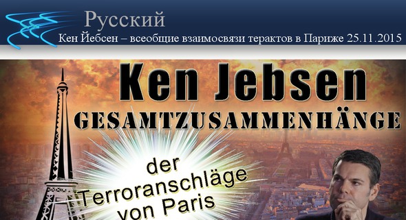 Известный свободный журналист и модератор Кен Йебсен анализирует теракты в Париже с особой точки зрения. Он меньше освещает детали, а, напротив, показывает исторический план, то есть всеобщие взаимосвязи и основные принципы глобальной стратегии власти. Эта красная нить помогает лучше понять и трезво оценить прошедшие, настоящие и будущие события этого рода и – что самое важное – помогает целенаправленно действовать.