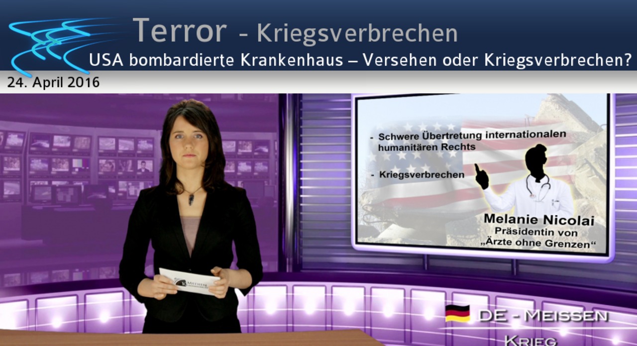 USA bombardierte Krankenhaus - Versehen oder Kriegsverbrechen? Während der russischen Luftangriffe in Syrien vom 30. September 2015 bis 14. März 2016 auf Ziele des Islamischen Staates wurde in den Medien immer wieder von zivilen Opfern gesprochen. Dabei wurde Russland bezichtigt, zivile Krankenhäuser zerstört zu haben. Die Beweise dafür waren aber mehr als dürftig. Kla.TV berichtete bereits dazu. Offenkundig und bewiesen allerdings ist die Zerstörung des letzten Krankenhauses der Organisation “Ärzte ohne Grenzen“ im afghanischen Kundus. „Kollateralschaden“, also ein unbeabsichtigter oder eventuell „in Kauf genommener“ Begleitschaden in Zielnähe - so bezeichnete das US-Militär den Vorfall, bei dem 42 Menschen starben. Dieser wurde durch das US-Militär, die NATO und die afghanischen Streitkräfte untersucht. Ihr Ergebnis lautete: Der Angriff am 4. September 2015 sei Folge menschlichen Versagens. Angeblich hätten die US-Streitkräfte nicht gewusst, dass es sich um ein Krankenhaus handelte. Doch Vorher-Nachher-Bilder belegen eine chirurgische Präzision des Bombardements, was einem beiläufigen Angriff klar widerspricht. Weiter hatte „Ärzte ohne Grenzen“ allen Kriegsparteien mehrfach genaue Geodaten des Krankenhauses übermittelt. Dieses war zudem aus der Luft durch große, markierte Tücher auf den Dächern klar als solches erkennbar. Auch wurde die NATO-Zentrale in Kabul sofort über den Angriff informiert – trotzdem ging das Bombardement eine Stunde weiter. Jason Cone, Geschäftsführer der '“Ärzte ohne Grenzen“, bezeichnet die US-Erklärung als „ungenügend“. Es reiche nicht aus, wenn die Täter die einzigen Ermittler sind. „Ärzte ohne Grenzen“ sammelte bisher in einer Petition über 550.000 Stimmen -Stand Dezember 2015-für eine unabhängige Untersuchung durch die Internationale Humanitäre Ermittlungskommission IHFFC. Doch die USA und Afghanistan lehnen weitere Aufklärung ab. Somit muss der Präsidentin von „Ärzte ohne Grenzen“ Melanie Nicolai zugestimmt werden, welche diesen abscheulichen Angriff des US-Militärs als eine schwere Übertretung internationalen humanitären Rechts bezeichnete – und damit als Kriegsverbrechen.
