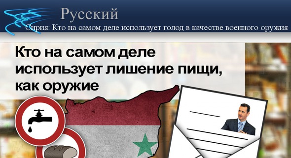 Не проходит и дня, чтобы западные СМИ не повторяли в своих сообщениях о Сирии мантру, что президент Сирии Башар аль-Асад заставил свой собственный народ голодать. 6 июня 2016 года ООН объявила, что несколько сотен тысяч человек в районах, находящихся под контролем повстанцев, затронуты блокадой режима Асада.