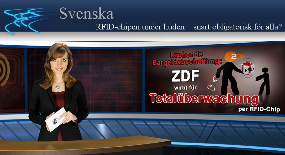 Tyvärr verkar de s.k. ”sammansvärjningsteoretikerna” fått rätt igen. I en sändning från den tyska tv-kanalen ZDF yttrade man sig positivt om att de framtida betalningsväsendena kommer att ske genom en inplanterad RFID-chip. RFID står för ”Radio-Frenquency Identification” och är en teknik för att läsa information på avstånd från transpondrar och minnen och som i detta fall består av en millimeter stor mikrochip som kan bli inplanterad under huden, t.ex. i handen. Enligt ZDF är i Sverige ett pilotprojekt på gång där kontantlösa betalningar sker genom RFID-chip. Moderatorn Claus Kleber svärmade för denna teknik och lät en programvaruutvecklare göra reklam om RFID-teknologins s.k. säkerhet. Han sa under annat: ”Det finns personer som är bekymrade över att regeringen kan kontrollera varje enskild, att man förlorar den personliga friheten, osv... Det stämmer inte, för chipen skickar inga signaler, man behöver en avläsare för att de ska fungera, de är passiva.” Frågar man verkliga fria programvaru- experter, så motsäger de detta påstående. För skulle en dag betalningsväsendet per chip bli till standard, kan varje person bli lokaliserad genom läsaren. Därmed kan varje underrättelsetjänst, och varje kriminell organisation skapa en profil av varje enskild person, för att kunna kontrollera: var man befinner sig, vad man när köper något och allt vad man annars gör. Födseln av den genomskinliga människan är då fullbordad. Och tyvärr finns det inte mycket hopp om att denna form av den totala övervakningen kommer att dröja. För det som Claus Kleber entusiastiskt berättade, är sen flera år ett klart beslut på det globala elitnätverkets agenda. Och moderatorn Claus Kleber tillhör just detta elitnätverk. Han är medlem i ”Atlantik- Brücke”, på engelska: "Atlantic bridge" en filial av elitklubben CFR. CFR står för: „Council on Foreign Relations“. Hollywoodproducenten och senare politik- aktivisten Aaron Russo, berättade vid sin dödsbädd vad Nicholas Rockefeller förrådde honom, när han ville värva honom som medlem i CFR: "Agendans mål är att det ska skapas en global regering och att alla människor ska få en RFID-chip inplanterad. Kontanterna ska avskaffas och endast genom denna chip ska betalningsväsendet ske. Rockefeller sa till mig att de kommer nå detta mål. Alla dina pengar kommer att vara på chipen, och då kan CFR "tömma chipen" så ofta som de vill. Protesterar någon, kan chipen stängas av och man kan varken köpa eller sälja något, man ”existerar” inte längre, den totala övervakningen över hela befolkningen! CFR vill skapa en global regering som är under deras kontroll." Det var orsaken varför Aaron Russo vägrade bli medlem i CFR, vars filial Claus Kleber entusiastiskt propagerade för RFID-chipen i den tyska tv-kanalen. Kära tittare, antingen bekämpar vi med övertygelse och beslutsamhet denna utveckling, eller den totala övervakningen genom eliten som Aaron Russo berättade om blir vårt öde. Skick denna sändning, till alla ni känner, så att utvecklingen av CFR:s planer kan stoppas.