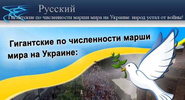 Актуальные события на Украине, о которых сообщают из Украины в последнее время, и которые обоснованы обширным фотоматериалом, следует рассматривать с этой точки зрения. Только местные СМИ об этом ещё, кажется, ничего не знают, ведь в настоящее время уже сотни тысяч украинцев с востока и запада шествуют в марше мира в Киев.