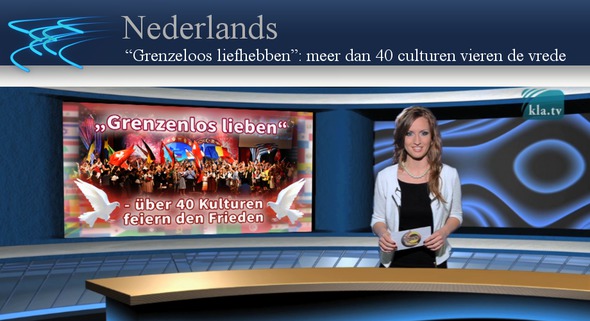 Goede avond. Hier zijn wij weer, maar vandaag met DaN, De andere Nieuwsuitzendingen: met positief nieuws uit heel de wereld. Onder het motto “Grenzeloos liefhebben – internationale vriendschap 2016 “ verzamelden zich op 14 mei meer dan 3000 mensen uit meer dan 40 naties en gaven een signaal tegen verdeeldheid en oorlog. Mensen uit verschillende landen, religies en culturen betuigden elkaar hun wederzijdse waardering en liefde op een mondiale catwalk. Filmopnames van hoe bv. een oorlogsslachtoffer uit Palestina tegen Israël zegt: “Ik heb mijn bittere ervaringen afgelegd en de vijanden vergeven", of hoe Russen, Oekraïeners en Amerikanen gezamenlijk dansen... dit verspreidt zich nu op internet als een lopend vuurtje en zo wordt hoop doorgegeven voor een toekomst zonder terreur, oorlog en leed… De afgelopen maanden berichtten wij over de verschillende pogingen van de belangrijkste media, om religie als oorzaak van bijna alle oorlogen, vast te leggen in het volksbewustzijn. Manipulatiepraktijken met zeer vernietigende uitwerkingen. Verruim daarom vandaag nog uw zienswijze met Kla.TV, om te begrijpen wat terreur en religie echt met elkaar te maken hebben. Hierna zenden wij - in drie blokken - filmopname uit van deze manifestatie. 1. Een montage van 13 minuten van deze grote manifestatie 2. Een korte samenvatting van de toespraak “Overwinnaar-Matrix” door Ivo Sasek 3. Live opnames van de mondiale catwalk van de liefde, met culturele bijdragen uit meer dan 40 naties. Deel ook deze en andere vonken van hoop uit onze DaN, met familie, vrienden en kennissen! Tot ziens.