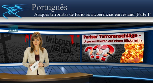 Aos 13 de novembro de 2015, a capital francesa foi abalada por uma série de ataques sem precedentes. Em seis locais diferentes três esquadrões de terror abriram um tiroteio ilegal contra os civis e se explodiram no ar. Sobre estes ataques Kla.TV relatou nos seguintes programas. Mal tinha acontecido tudo isso, para os meios de comunicação parecia que tudo já era claro: o Presidente François Hollande fala de guerra e declarou estado de emergência. Em um comunicado publicado na Internet aos 14 de Novembro o Estado Islâmico (IS) deu-se a con-hecer sobre os ataques. Também aos 14 de Novembro foi publicado na Internet que muitos atacantes foram facilmente identificados. Cúmplices possíveis e supostos mandantes foram imediatamente conhecidos e a onda de busca imediatamente começou. Como suposto autor intelectual foi conciderado o belga islâmico Abdelhamid Abaaoud, que foi rudemente morto em uma operação policial ao norte da capital francesa. Detalhes sobre isso você encontra na emissao do 30.11.2015 (www.kla.tv/7237 )(EM ALEMAO) Mas em uma inspeção mais próxima é tudo ainda tão clara como deseja transmitir os meios de comunicação, à primeira vista? Recordemos os ataques terroristas de 11 de Setembro de 2001 em Nova Iorque. Também, aí os autores foram rapidamente determinados e ao mesmo tempo tudo parecia estar clara. Mas no decorrer do tempo inúmeras incoerências foram trasidas a luz, o que fez com que dezenas de milhões de americanos não poderiam mais ser satisfeitos com a explicação oficial da destruição do World Trade Center Veja sobre isso o Noticiário de 11.9.2015 (www.kla.tv/6693 ). Parece muito estranho que as forças de segurança, por um lado, aparentemente, não têm autoridade suficiente para prevenir os ataques minunciosamente planeados. Mas, imediatamente depois dos ataques, onde no entanto, não há ninguém que sabe onde está a cabeça, imediatamente teem tudo em vista e sob controle. Exatamente por esta razão é que tomamos neste programa de hoje os acontecimentos que envolveram os ataques de Paris pouco mais de perto e resumimos as principais inconsistências do seguinte modo. Mais detalhes sobre pontos específicos, consulte os links exibidos. 1. „Incoerências sobre os acontecimentos e atentados em 13 de novembro em Paris como o jornalista alemão e autor Gerhard Wisnewski notou, quase todos os grandes ataques desde 11 de Setembro de 2001, em Nova yorque teem o mesmo modelo, cito: "Pouco antes dos atentados ou mesmo simultaneamente foram efectuados exercícios de catástrofe com o conteúdo exacto dos acontecimentos, que é então vendido ao público como um ataque terrorista real "Assim também em Paris: em frente ao jornal britânico". The Guardian ", disse o médico de urgências francês Patrick Pelloux que, o pessoal de emergência médica, polícia e bombeiros na manhã de 13 de novembro de 2015 tinha realizado um exercício de ataques fictícios em vários locais de Paris. 2. Os atacantes estavam profissionalmente organizado, utilizaram armas de assalto e estavam equipados com coletes explosivos o que lhes identifica como profissionais. Cerca de 90 pessoas morreram naquela noite na sala de concertos Bataclan. - Segundo os investigadores deveria ter havido quatro mortes no estádio de futebol, incluindo os três terroristas suicidas. Seguindo Wisnewski dois dos atores dos atantados queriam entrar no estádio de futebol, mas foram mandados embora sem serem presos. Quando pessoas no terceiro Mundo se fasem explodir com sintos explosivos feitos por eles mesmo, ja levam consigo muito mais pessoas à morte. Estas marcantes inconsistências devem ser profundamente pesquisadas, para não se correr o risco de seremos instrumentalizados por direcionado engano. Na parte 2 que segue amanha, daremos continuidade com demais incoerências sobre os atentados e supostos mandantes e iluminar as reações dos governos. Sobre isso nós apontaremos também as possíveis metas que podem conter o engano.