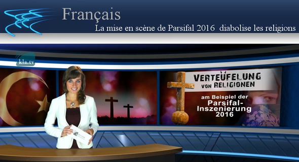 Le 25 juillet 2016 a eu lieu à l’opéra de Bayreuth l’ouverture annuelle du festival Richard Wagner avec la nouvelle mise en scène de l’opéra de Wagner « Parsifal ». Le festival de Bayreuth est un théâtre musical, qui est mondialement connu et très fréquenté. Traditionnellement est inscrit au programme un choix variable des principales œuvres de Richard Wagner. La nouvelle mise en scène de cette année, l’opéra « Parsifal », se distingue par ses scènes particulièrement cruelles, cannibales, et hostiles aux religions. Les sacrifices ont lieu dans une communauté religieuse du Proche-Orient qui pratique ses rituels dédiés au saint Graal – une coupe miraculeuse – dans une église à moitié dévastée. Voici quelques scènes : Amfortas, le jeune roi du Graal, qui souffre d’une blessure incurable, exerce la fonction de prêtre. Il est Jésus : couronné d’épines, torturé par des stigmates aux pieds et aux mains. En tant qu’agneau offert en sacrifice il est tué sur l’autel. Un moine lui enfonce un clou dans la blessure qu’il porte au côté, le sang s’écoule de tout son corps, les moines le boivent pour se fortifier. Ceux-ci rouvrent continuellement la même blessure d’Amfortas, pour se fortifier par son sang. A travers ces images sanglantes et brutales, on veut transmettre aux spectateurs le message que des personnes souffrent des agissements du christianisme. Le deuxième acte montre que l’Islam ne vaut pas mieux. Dans le jardin enchanté de Klingsor les filles qui apportent des fleurs sont partout dans le bain turc, tout d’abord entièrement drapées, ensuite dans des mini bikinis. Elles déposent leurs manteaux noirs lorsqu’arrive Parsifal – le héros et futur gardien du Graal – et elles le caressent comme dans un harem de prostituées. Ici comme ailleurs on opprime, on souffre et on se blesse soi-même. Le message que veut transmettre le réalisateur cette année avec la mise en scène de Parsifal est le suivant : les religions incitent les gens à des actions bizarres et meurtrières. Le troisième acte nous montre la solution pour sortir de ce marasme : le retour à la nature. De grosses feuilles d’aloe vera traversent les murs du cloître. Même la pluie tombe dans le désert, lors de la magie du vendredi saint, et des jeunes femmes nues dansent des rondes joyeuses entre d’énormes fleurs. En fait tout pourrait être très beau ! Nous pourrions avoir la paix. Nous pourrions avoir la joie. Nous aurions juste besoin de faire disparaître dans le cercueil de Titurel tous les symboles religieux chrétiens, judaïques et islamiques, et ainsi les hommes s’entendraient. La citation suivante du Dalaï Lama se trouve en exergue sur le programme de l’ouverture du festival de Bayreuth de cette année : « Certains jours je pense que ce serait mieux si l’on n’avait plus du tout de religion. » Cette précision permet de conclure une fois de plus que sous le couvert de la culture, ce sont des buts globalistes qui sont mis en œuvre : les religions doivent être déformées et diabolisées jusqu’à apparaître dans la conscience du peuple comme la source de presque toutes les guerres du passé. C’est de façon stratégique que le nouvel ordre mondial sera instauré par ses architectes qui affirment que leur propre version de la religion sera légitime à l’avenir. Exactement ces relations de causes à effets sont démontrées de façon détaillée dans l'émission "Nazis, une arme contre la conscience nationale gênante" que vous pouvez visionner à la date du 20 janvier 2016.