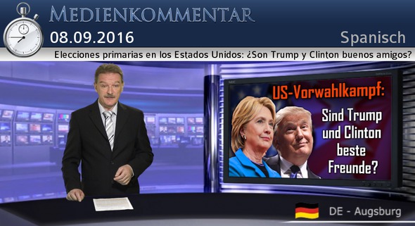 Mientras que Donald Trump es flagelado en casi todos los medios de comunicación occidentales debido a sus supuestos patinazos verbales, los informes que cubren la imagen de Hillary Clinton, la esposa del ex presidente de los Estados Unidos, Bill Clinton, son en su mayoría positivos. Y esto es lo que podría ser más que mero cálculo, puesto que los analistas políticos ya están advirtiendo desde hace algún tiempo que podría tratarse de una puesta en escena de los medios, haciendo aparecer realista el intercambio de insultos entre los dos candidatos principales, montando un gran espectáculo. Ya en agosto de 2015 la revista política Cicero sugería que las familias Trump y Clinton son en realidad buenos amigos y plantea la cuestión de si puede ser que Trump no fuera sino un submarino de los Clinton.
