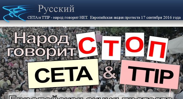На общеевропейской акции 17 сентября 2016 года народ говорит НЕТ всеобъемлющему экономическому и торговому соглашению и трансатлантическому торговому и инвестиционному партнёрству! CETA, планируемое соглашение о свободной торговле между ЕС и Канадой, тайно обсуждается уже с 2009 года. Однако, в августе 2014 года текст договора в более чем 1500 страниц был так сказать "взломан" одной из разоблачающих платформ и стал доступным для публики. В результате этого, в сентябре того же года Европейская комиссия была вынуждена также опубликовать завершённый и согласованный текст договора. Договор о трансатлантическом торговом и инвестиционном партнёрстве ТТИП между США и ЕС также обсуждался за закрытыми дверями с июня 2013 года. Однако, в мае 2016 года экологической организации Гринпис, к недовольству ЕС и США, удалось довести секретные документы до общественности. С тех пор, как содержание договоров невольно стало достоянием общественности и доступным для каждого, среди населения Европы растет недовольство. С того момента гражданские движения против содержания и целей CЕТА и ТТИП становятся всё больше. Вот лишь несколько примеров: В одном из проведённом ЕС в 2014 году опросе относительно зоны свободной торговли ТТИП и инвестиционных статей, в котором приняло участие 150.000 граждан Европы, 97% высказались против TTИП. - В 2014 году более ста учёных со всего мира в совместном заявлении выразили своё глубокое беспокойство по поводу TTИП. В особенности, они критиковали запланированные положения о защите инвестиций. - В противостоянии TTИП 500 европейских организаций объединились в гражданскую инициативу "СТОП ТТИП". В 2015 году в рамках этой инициативы было собрано более 3,2 миллиона подписей против TTИП, которые были представлены на рассмотрение Европейской комиссии. - Наряду с многочисленными демонстрациями в ряде городов Европы, массовая демонстрация против TTИП в Берлине 10 октября 2015 года с участием около 250.000 демонстрантов, является, пожалуй, самой впечатляющей. - Около 2000 политических общин по всей Европе уже высказались против господства концернов и нападок на их демократические права и объявили себя общинами, свободными от СЕТА и TTИП. - В Австрии, в конце августа, против TTИП, СЕТА и соглашения о торговле услугами в Министерство внутренних дел была представлена петиция с 40000 заявлениями, т.е более чем в четыре раза больше необходимых голосов. - Союз организаций FOODWatch, Campact и ассоциации "Больше демократии" передали в конце августа 2016 года самый большой до сих пор гражданский иск в Германии в Федеральный конституционный суд. Иск со 125.000 доверенностей направлен против планируемого между ЕС и Канадой торгового соглашения CЕТА. - Лишь за несколько дней до того, одна гражданка Германии также подала в Федеральный конституционный суд гражданский иск против CЕТА с количеством доверенностей в 68.000. Настойчивая позиция многих гражданских движений, с целью помешать принятию договоров TTIP и CETA, имеет всё большее воздействие и на политические круги. Так немецкий министр экономики и вице-канцлер Зигмар Габриэль в конце августа объявил о провале TTIP, цитата: „Так как мы, европейцы, не можем подчиниться американским требованиям“. Несколько дней позже австрийский вице-канцлер и министр экономики Райнхольд Миттерленер также объявил TTIP несостоявшимся и обосновал это, среди пр