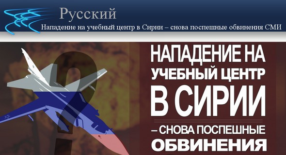 27 октября 2016 года SPIEGEL ONLINE сообщил: «На школьников в Сирии падают парашютные бомбы. По-видимому, намеренно. Видео показывает самолет российского производства». Как сообщил SPIEGEL ONLINE, по данным ЮНИСЕФ, в среду 26 октября 2016 года в Сирии произошло самое серьёзное нападение на школу: во время воздушного налета на школьный центр в селе Хаас, в провинции Идлиб, погибли 22 ученика и шесть учителей. Западные СМИ и политики незамедлительно возложили ответственность за это на Россию. Однако, Россия решительно отклоняет обвинения и требует конкретных доказательств. SPIEGEL ONLINE ссылается на видео с самолётом, который, правда, можно с трудом распознать. (См: www.spiegel.de/politik/ausland/syrien-russland-bestreitet-jede-verantwortung-an-angriff-auf-schule-a-1118592.html) Тем не менее, уже передаётся, что речь, «по всей видимости» идёт о бомбардировщике Су-24, который производится в России и, что только российская и сирийская армии обладают самолетами такого типа. Так сообщает SPIEGEL ONLINE. Примечательно в этом сообщении СМИ то, как быстро и безоговорочно Россию и Сирию сделали ответственными за этот инцидент, не объясняя в деталях, кто и когда сделал это видео? И кто даст гарантию, что это, действительно, российский самолет? Ведь в прошлом СМИ неоднократно ссылались на ложные фотографии и видео в качестве доказательств, и даже на лжесвидетелей. Мы уже сообщали в деталях о таких ложных обвинениях в адрес России в связи с конфликтом на Украине в следующих передачах: - Конец второго немецкого телевидения? (См: www.kla.tv/7530) - Намеренно ли фальсифицируются телевизионные изображения? (См: www.kla.tv/4034) - КРИКИ О ПОМОЩИ: украинское правительство уничтожает мирных жителей! (См www.kla.tv/3240) - С каким намерением фальсифицируются телевизионные изображения? (См www.kla.tv/4135) И всё-таки стоит принять во внимание ещё один аспект: несколько недель назад канадский журналист Кристиан Борис выложил в Интернете фотографии американских истребителей F18, перекрашенных в цвета российского камуфляжа и с российскими опознавательными знаками. Откуда именно эти кадры, неизвестно. Ясно только, что для полётов во время боевой подготовки может быть использован камуфляж противника. Это стандартная программа. Но это также чётко показывает возможность того, как легко с помощью перекрашенных самолётов можно противника сделать ответственным за военные преступления, которые были совершены под ложным флагом своими собственными людьми. Итак, операция под ложным флагом. Не так ли в судебной практике, что человек считается невиновным до тех пор, пока его вина полностью не доказана? И нарушение этого принципа не оценивается ли в качестве «подстрекательства» или, так сказать, «проповеди ненависти»? Следовательно, для того, чтобы любое подстрекательство сделать неэффективным уже в зародыше, обвинения должны быть тщательно проверены, и в особенности тогда, когда они поспешно и неистово преподносятся западными СМИ.