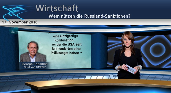 Während europäische Unternehmen unter den Russland-Sanktionen leiden, machen nach Aussagen von Frank Schauff, Geschäftsführer der „Association of European Business“ in Moskau, die US-Konzerne nach wie vor gute Geschäfte mit russischen Firmen. Der amerikanisch-russische Warenaustausch legte 2015 laut russischen Statistiken um knapp sechs Prozent zu. Der Handel mit den Staaten der EU dagegen schrumpfte 2015 um fast zehn Prozent. Die Stimmen der Sanktionskritiker bekommen einmal mehr Recht, und es zeigt sich zunehmend, dass die Strategie Washingtons in erster Linie nicht allein gegen Russland, sondern gegen die EU und allem voran gegen Deutschland gerichtet ist. Die EU-Staaten werden gegen Russland aufgehetzt und so gleichzeitig wirtschaftlich geschwächt. Im Februar 2015 gab es in Chicago ein Treffen von der US-Denkfabrik Strategic Forecasting Inc, kurz Stratfor, wo Analysen, Berichte und Zukunftsprojektionen zur Geopolitik, zu Sicherheitsfragen und Konflikten erstellt werden. Der Chef von Stratfor George Friedman, bringt es in einer Rede selbst auf den Punkt: „Die Urangst der USA ist, dass deutsches Kapital und deutsche Technologien sich mit russischen Rohstoffen und russischer Arbeitskraft verbinden – eine einzigartige Kombination, vor der die USA seit Jahrhunderten eine Höllenangst haben.“