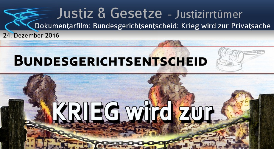 Wer rechtfertigt überdies, oder wer unterstützt aktuell laufende Kriege mehr als etwa gefälschte Kriegsbilder, gefälschte Kriegsberichterstattungen wider besseres Wissen? Belege dazu finden Sie in den eingeblendeten Sendungen: www.kla.tv/3330, www.kla.tv/4135, www.kla.tv/7659. Konsequenterweise kann nun auch jede nachgewiesene Mittäterschaft bei solch illegalen Kriegstreiberhandlungen bis zum »kleinsten Rädchen«, sprich Journalisten, Kriegsreporter etc. hinunter verfolgt und bestraft werden. Wie man auf dieser Grundlage mit gegenwärtigen und auch künftigen Kriegstreibern samt ihren »kleinen Rädchen« jedoch tatsächlich verfährt, bleibt abzuwarten. Zumindest dürfte sich der neue Grundsatzentscheid des Bundesgerichtshofes als Steilvorlage für alle Kriegsgegner erweisen: denn ab sofort wird jeder Krieg, jeder Armee-Einsatz zur absoluten Privatsache. Wer sich in welchen Krieg auch immer mit einbeziehen lässt, trägt ab sofort die private Verantwortung für alles, was ihm dort abverlangt wird. Militär und Justiz dürfte es künftig schwer fallen, Kriegsdienstverweigerer davon zu überzeugen, dass ausgerechnet sie von einer potentiellen künftigen Mittäterschaft ausgeschlossen werden könnten. Wie würde sich der 95-jährige Oskar Gröning heute entscheiden, hätte er nochmals die Gelegenheit dazu? Eine Kriegsdienstverweigerung während der Kriegsjahre hätte ihm möglicherweise das sofortige Todesurteil gebracht. 70 Jahre später sind es nur noch vier Jahre Haft… so oder so also die absolute »lose-lose« Situation für den gehetzten Kriegsmann.