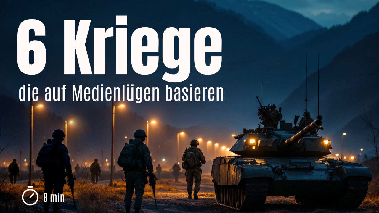 August 1964: Golf von Tonkin. Vor der Küste Nordvietnams. Massenmedien verbreiten die Meldung, nordvietnamesische Schnellboote hätten zwei US-amerikanische Kriegsschiffe mehrmals ohne Anlass beschossen. STARTSCHUSS FÜR DEN KRIEG! Vietnam wird von den USA angegriffen! ** Gegenüberstellung: „Verschwörungstheoretiker!“, schrie man einst noch gegen die Menschen, die aufdeckten, dass dieser Angriff von den USA selbst inszeniert wurde als „Unter-Falscher-Flagge-Skandal“. Doch heute ist die Verschwörung offiziell: Der damalige Verteidigungsminister Robert McNamara gab später zu, dass es sich tatsächlich um eine Attacke der USA unter falscher Flagge handelte! ** Oktober 1990: Ein 15-jähriges Mädchen sagte unter Tränen vor laufenden Kameras aus, dass sie in einem kuwaitischen Krankenhaus gesehen habe, wie irakische Soldaten Säuglinge aus Brutkästen gerissen und auf dem Boden hätten sterben lassen. Die Medien posaunten es wie immer lauthals heraus. Also: STARTSCHUSS für den großen Völkermord im Irak! ** Gegenüberstellung: Das Mädchen aber flog als eine kuwaitische Diplomatentochter auf, die für diese Brutkastenlüge richtig viel Geld kassierte und von einer PR-Agentur ausgebildet wurde. Den Auftrag erhielt sie von einer in Amerika operierenden Organisation. Sie arbeitete nie in dem Krankenhaus. Die Geschehnisse waren erstunken und erlogen. Wurde dieses Verbrechen jemals geahndet? Und dennoch hetzen und schreien die Medien lauthals weiter gegen alle, die solche Verschwörungen zur rechten Zeit aufdecken, „Verschwörungstheoretiker!“. ** Februar 2003: „Saddam Hussein besitzt Massenvernichtungswaffen!“, dröhnte es durch die Massenmedien, sodass alle einmal mehr kopfnickend zuschauten, wie die Vereinigten Staaten und deren Verbündete in den Irak einmarschierten! 600.000 Zivilisten wurden umgebracht - das sind 90% aller Opfer! Allein während eines dreiwöchigen Einsatzes wurden von den USA zwischen 1.000 und 2.000 Tonnen Uranmunition eingesetzt, was bis heute unzählige Geburten schrecklich deformierter Babys zur Folge hat. ** Gegenüberstellung: Wer zur rechten Zeit darauf hinwies, dass dieser Krieg auf einer Lüge aufbaut, wurde wie immer als Verschwörungstheoretiker mundtot gemacht. Doch einmal mehr – als es zu spät war – wurde die Verschwörung noch offiziell: Der damalige Außenminister Colin Powell räumte später ein, dass sich die Quellen für angebliche Massenvernichtungswaffen nicht als solide erwiesen haben. Die 1.400 Personen umfassende „Untersuchungsgruppe Irak“ (ISG) fand keine Massenvernichtungsmittel. Was für ein grausames Ausmaß an erwiesener Verschwörungspraktik… ** März 2011: Die Behauptung eines libyschen Informanten vor der UNO, Gaddafi habe 6.000 Menschen getötet, führte schließlich zum Libyenkrieg durch die NATO. In den Medien hieß es: „Gaddafi führt blutigen Krieg gegen sein eigenes Volk“ usw. ** Gegenüberstellung: Doch die Behauptung der 6.000 Toten stellte sich als Lüge heraus. Als man den Informanten später fragte, sagte er, er habe keine fixen Quellen für die Zahl von 6.000 Toten gehabt. Er habe das einfach so gehört… ** Kosovo, März 1999: Laut den Massenmedien der NATO-Länder spiele sich hier eine humanitäre Katastrophe ab. Von Massakern der Serben an kosovo-albanischen Zivilisten war die Rede sowie von einem Konzentrationslager. Dies führte zum NATO-Krieg gegen das damalige Jugoslawien im Jahr 1999 und damit tatsächlich zu einer verheerenden humanitären Katastrophe. ** Gegenüberstellung: Diese Anschuldigungen wurden nur wenige Monate nach Beendigung der NATO-Bombardierung Jugoslawiens öffentlich widerlegt. Gemäß mehreren Berichten, auch von der OSZE, gab es im Kosovo vor Kriegsbeginn keine humanitäre Katastrophe. Laut kosovo-albanischen Augenzeugen habe es keine ethnischen Säuberungen gegeben und keinen Gefangenen im angeblichen Konzentrationslager. ** Der 7. Dezember 1941 ging als „Tag der Schande“ in die Geschichte ein – nach offiziellen Medien-Meldungen griff Japan die Pazifikflotte der USA in Pearl Harbor an. 2.403 Menschen verloren ihr Leben. Einmal mehr sind die Gemüter aufgeheizt und ein weiterer Startschuss für den Krieg angeblich gerechtfertigt. Am Tag darauf erklärte die USA Japan den Krieg. ** Gegenüberstellung: Doch auch hier stellte sich später heraus, dass die US-Regierung den Angriff gezielt provoziert hat bzw. von dem kommenden Angriff gewusst und die Flotte in Pearl Harbor nicht gewarnt hatte, um den Kriegseintritt der USA zu rechtfertigen. Dies wies der US-amerikanische Historiker John Toland nach. Ebenso dokumentierte ein Tagebucheintrag von Roosevelts Kriegsminister Henry Stimson: Die USA provozierten bewusst Japan zum ersten Schuss! Die Medien unterstützen mit ihrer Propaganda somit nachweisbar die grausamsten Kriegsverbrechen, decken die Kriegstreiber und verbreiten immer wieder aufs Neue haltlose Verschwörungstheorien, die grausamste Kriege und Massenmorde zur Folge haben. Dubiose Quellen und oft auch im „Konjunktiv“ genannte Verleumdungen und Lügen schüren beständig Hass und legen den Grund für Krieg und Terror. Diese Verbrechen werden nicht geahndet, stattdessen jagt man harmlosen Menschen nach, die auf diese Verschwörungen hinweisen und verleumdet sie immer wieder aufs Neue. GEGENÜBERSTELLUNGEN: GEFÄLSCHTE BILDER Ein Hilfsmittel zur verschwörerischen Kriegstreiberei sind zudem Fake-Bilder, ob gestohlene, gefälschte oder einfach falsche Bilder – sie dienen zur Schürung von Hass und treiben die Menschen zur Kriegsbereitschaft! ** Dieses Folterbild soll die Grausamkeit Assads im Jahr 2011 beweisen. ** Gegenüberstellung: Das Video stammt aber aus dem Jahr 2007 aus einem Lager im Irak. ** Dies sollen russische Panzer sein, die am 19. August 2014 in die Ukraine einrollen. ** Gegenüberstellung: Doch dieses Bild stammt aus dem Jahr 2008 aus dem Kaukasus. ** Das hier sei ein Helikopter, der von russischen Separatisten in Slaviansk – Ukraine, 