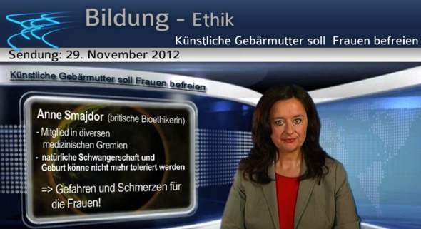 Die Erzeugung der Kinder soll in Zukunft ohne Eltern stattfinden, am besten in Fabriken, wobei bestimmte Konzerne diese Aufgabe übernehmen würden. Genau das verlangt die führende britische Bioethikerin Anne Smajdor an der Universität East Anglia in ihrer neuesten Studie „Research Priorities and Future of Pregnancy“, veröffentlicht im Cambridge Journal. Als Buchautorin zum Thema sitzt sie in diversen medizinischen Gremien als Ethikberaterin und fordert, dass in einer wirklich liberalen Gesellschaft die natürliche Schwangerschaft und Geburt eines Kindes nicht mehr toleriert werden dürfe, weil diese mit Gefahren, Schmerzen und großen Einschränkungen für die Frauen verbunden sei. Smajdor wird von der Wellcome Trust [Stiftung für medizinische Forschung] gesponsert, die 2010 auch den Film „In Vitro“ finanzierte. In diesem Film wird die Geschichte einer Wissenschaftlerin gezeigt, die ein eigenes Ei befruchtet, mit Spermien, die sie aus ihrem Knochenmark herstellte. So wird dann unter dem Mantel der Wohltätigkeit und getarnt als medizinischer Fortschritt die Pervertierung des Menschen wieder ein Stück weiter vorangetrieben.