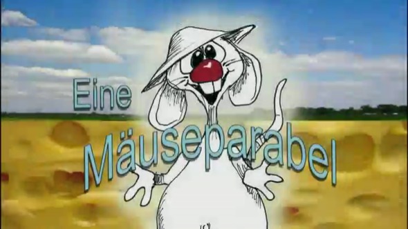 Sprecher: Eine Mäuseparabel. Für Mäuse und andere Interessierte. Es waren einmal vier junge Mäuse, die spielten vergnügt auf ihrem Plateau Erde. Sorglos genossen sie ihre Jugendzeit und lernten dabei spielerisch, das Gleichgewicht auf ihrer schwebenden Platte zu bewahren – schwebte diese doch frei im Nichts -. Nur in dieser abgestimmten Harmonie konnten sie auf ihrem Platz Erde leben. Doch allmählich wurden aus den vier kleinen Mäusen vier große, erwachsene Mäuse. Der Drang nach Horizonterweiterung erwachte in ihnen. Ein Blick über die eigene Nasenspitze hinaus war an der Zeit. Nebst ihrem Plateau gab es ja noch eine große, weite Welt. Stunden-, ja tagelang studierten sie nun das eigenartige Dunkel um sie herum und wurden schwermütig über der Frage, wozu sie eigentlich leben. Maus 1: Ach, die Sternschnuppen sind viel zu weit weg., Sprecher: murmelt der älteste der Mäuseschar, genannt Mäusi der Reife, in seinen Schnurrbart. Maus 2: Wenn es nur etwas gäbe, was wir gemeinsam auf unserem Plateau anpacken könnten, sonst vereinsamen wir noch ganz. Sprecher: Und siehe da, eines Tages geschieht es, und unser Mäusi macht den Fang. Als Ältester der Vier besitzt er nämlich nicht nur das feinste Gemüt, die größte Weitsicht, nein, sondern auch noch den längsten Schwanz, und damit angelt er aus dem Weltendunkel etwas an Land. alle Mäuse: Käse! Sprecher: klingt es aus vierfacher Kehle. Jeder Schwermut ist im Nullkommanichts weg. alle Mäuse: Käse, Käse, Käse, Käse! Sprecher: Es lache ja nur niemand unserer werten Zuschauer über diesen Fang oder denke gar bei sich: „Ach, so ein Käse.“ Nein! Versetzen Sie sich mal in die Lage der Mäuse! Käse gehörte seit Jahrhunderten zu den Grundnahrungsmitteln des Mäusegeschlechtes. In der modernen Zeit wurde das aber leider vom Ernährungskonzern Mäusanto mit Astronautenkost ausgetauscht. Gönnen wir ihnen doch darum die Freude über diesen fetten Fang eines waschechten Emmentalers. alle Mäuse: Ein echtes Geschenk des Himmels! Maus 2: Und wie der duftet! Maus 3 Einfach köstlich! Maus 3: Vom Feinsten. Maus 2: Ein echter Leckerbissen! Maus 3: So ganz anders als die Astronautenkost von Mäusanto. Maus 2: Ja, das ist der Urkäse, den schon unsere Großeltern verschmausten! Weder genmanipuliert, noch mit Codex Alimentarius infiltriert. Sprecher: Während die Vier genüsslich den vollen Gehalt des Käses genießen, wird Mäusi der Reife nachdenklich und meldet mit einer Rede an: Mäusi der Reife: Liebe Mäusis, es ist nicht gut, dass wir diesen Käse für uns alleine genießen, währenddem die gesamte Mäusegeneration an der falschen Ernährung von Mäusanto weiterleidet. Mit dieser Entdeckung des Urkäses, der im All zu angeln ist, haben wir eine Verantwortung bekommen. Wir haben die Aufgabe, es dem ganzen Mäusegeschlecht zu sagen. Sie müssen sich diese Nahrung auch angeln! Seid ihr dabei? Mäuse 2-4: Ja! Yippie, yeah! Maus 2: Wie wär’s, wenn wir als ersten Schritt unsere Fahnen auf dem Käse stationieren? So ist es für jedermann – äh, jedermaus – gut ersichtlich, wer hinter dieser Aufklärungsarbeit steht. Maus 4: Ja, dahintersteht! Maus 3: Die ganze Welt soll es sehen, jawohl! Maus 4: Jawohl. Sprecher: Gesagt, getan. Nullkommaplötzlich sind unsere vier Mäusis mit der neuen Vision verwandelte Mensch… - äh, Mäuse, natürlich. Mäusi der Reife: Endlich haben wir wieder eine gemeinsame Aufgabe, ein gemeinsames Ziel! Mäuse 2-4: Yippie, yeah! Maus 4: Diesen Käse verschmausen wir nicht allein, sondern bringen diesen Fund zu aller Welt. Maus 3: Zu aller Welt. Sprecher: Und so treten die vier Mäusehelden kampfentschlossen ihre Aufgabe an, verschreiben sich mit Haut und Haar – oh, Verzeihung, lieber Zuschauer, ich meine natürlich: mit Haut und Helm – ihrer neuen Passion. Mit dieser gemeinsamen Vision sind die Vier nicht mehr zu bremsen. Alles hätte nun hoffnungsvoll weitergehen können, wenn da – ja, wenn da - nicht plötzlich ihre ungetrübte Einheit durch einen eigensüchtigen Gedanken in ärgste Gefahr gekommen wäre. Schaut nur mal auf Mäusi den Cleveren! Was geht denn in ihm ab? Denkt der doch plötzlich nur noch an sich! Mäusi der Clevere: Was soll das? Eigentlich mag ich nicht, dass die Fahne von Mäusi dem Blauen da auch auf meinem Käse stinkt; weiß ja jeder, dass der nur ein Nachschwätzer ist. Soll doch nicht jeder sehen, dass ich mit dem zusammenarbeite! Und überhaupt: Wenn wir nur drei wären, dann gäbe es doch für jeden ein kräftiges Stück mehr.“ Sprecher: Gedacht, getan! Die Mäusenatur treibt ihn über alle guten Vorsätze und freundschaftliche Banden hinaus. Rücksichtslos drängt er Mäusi, den Blauen kurzerhand zur Bühnenkante. Übrigens: Heutzutage nennt man das in der Menschenwelt «Mobbing»; und das ist nun wirklich Käse. Nein, wie skrupellos! Schau sich das mal einer an, der wirft ja seinen Kollegen komplett raus! Merkt Mäusi der Clevere denn nicht, dass er mit seinem eigensüchtigen Handeln die Existenz aller Mäuse auf dem Plateau gefährdet samt seinem Leben? So clever scheint er ja nun also doch nicht zu sein. Anstatt gemeinsam der Mäusegeneration die lebenswichtige Botschaft zu bringen, verstricken sie sich untereinander! Ihre Plattform kommt in extreme Schieflage, und die ganze Harmonie fällt aus dem Gleichgewicht! Nur gut, reagieren die anderen zwei Mäuse sofort und bringen die leidige Sache wieder in Balance. Doch wie geht es nun weiter? Vielleicht wäre ja alles noch zu retten gewesen, hätte der negative Einfluss von Mäusi dem Cleveren und sein individualistisches Handeln nicht die ganze Atmosphäre auf dem Plateau verpestet. Der Wurm war im Topf, oder sagen wir mal: im Käse. Mäusi der Reife: Wir müssen weise überlegen, wie wir nun in geschwächter Konstellation strategisch fortfahren. Sprecher: Doch Mäusi, der Grünschnabel, der Jüngste der Mäusemannschaft, will nicht auf den Rat seines älteren Bruders hören; seine Geduld ist jetzt am Ende, die Ner