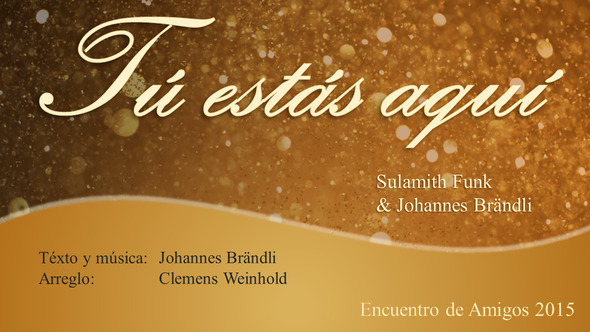 Tú estás aquí Miro lo que tengo delante, como una montaña en medio del camino. Quiero seguirte, Señor tu camino, pero ahora mismo me parece que es demasiado difícil. Pero Tú estás ahí y Tú me llevas. Sí, Tú me llevas directamente a esta alta montaña. Jesús, tú estás ahí y Tú me llevas, ningún enemigo puede detenerme andar el camino contigo. Algo ha sucedido que me entristece. Que me hace preguntar «¿por qué? Tal vez me vuelva nervioso, tal vez me vuelva callado, pero una mirada hacia ti es suficiente. Y sé que estás ahí y me llevas. Señor, tú me guardas y nunca me dejas solo. Sé que estás ahí y me llevas. Pase lo que pase, quiero alegrarme en Ti. Tú eres el único que nunca me traiciona, sí, estoy segura que nunca me mientes. Tú eres el único que promete tanto. Tú eres el único que nunca falta a su palabra. Cuántas veces recibí ayuda, Ayuda de ti en cada necesidad. He experimentado lo que está escrito en la Biblia que tú guías cada uno de mis pasos. Señor, haz que este conocimiento arraigue profundamente en mí y por respeto a Ti me haga resistir victoriosamente al diablo. Porque yo sé Tú estás ahí y Tú me llevas, Tú me rodeas por todos lados. Sé que Tú estás ahí y Tú me llevas. Mi corazón confía en Ti y tengo Tu ayuda - Tu ayuda. Mi corazón confía en Ti y tengo Tu ayuda.
