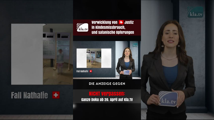 Navigieren Sie direkt zu:Weiterführende Dokumentationen: 27 Opfer und 27 Zeugen: www.kla.tv/26203 110 Opfer, 50 Zeugen und 50 Täter: www.kla.tv/27211 Skandal um SRF und Robin Rehmann – Satanic Panic: www.kla.tv/26202 Weltweite Vertuschung rituellen Missbrauchs: www.kla.tv/26577 Zahlreiche Veröffentlichungen diverser Zeitungen zum Fall Nathalie wurden aus dem Internet entfernt. Kla.TV hat viele gelöschte Quellen aus den Webarchiven wieder zugänglich gemacht, bis hin zu Interviews mit Nathalie, die von der Baslerzeitung veröffentlicht wurden. Beachten Sie dazu die Quellen unterhalb des Sendungstextes. Sichern Sie diese Quellen auch bei sich lokal. Weitere Quellen, die selbst auf den Webarchiven nicht mehr einsehbar sind, hat Kla.TV ebenfalls gesichert. |