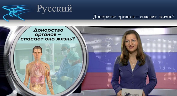 Уважаемые дамы и господа, мы приветствуем вас на нашем Медиа комментарии: спасает ли донорство органов жизнь?Согласно кампании Swisstransplant, через донорство спасается жизнь одного человека, это жизнь получателя органов.Но как это все выглядит с точки зрения донора органов? Swisstransplant пишет в своей брошюре о донорстве органов, что донор уже мёртв. Однако это утверждение неверно и вводит в заблуждение, донор не мёртв, у него наступила смерть мозга. Это означает, что из-за отсутствия поступления кислорода, мозг частично не функционирует. Некоторые функции не могут правильно сохраняться. Например - это относится к регулированию дыхания, сердцебиению и внешнему осознанию мира. Человек, у которого наступила смерть головного мозга, до трансплантации органов обслуживается как обыкновенный пациент в коме. Его кормят, моют и за ним ухаживают – даже раны могут ещё зажить. В организме беременных женщин, у которых наступила смерть головного мозга, продолжает расти эмбрион. Эмбрион созревает в организме до своего рождения. Это показывает, что человек, у которого наступила смерть головного мозга, не мёртв, при всем этом они, трансплантационной медициной считаются мёртвыми. Лауреат Нобелевской премии Ганс Йонас уже в 1974 предупреждал о том, чтобы критерий смерти головного мозга не послужил для приобретения органов. Прекращение лечения человека, у которого наступила смерть головного мозга, оправдана только в том случае, если это служит интересам самого пациента, а не для благотворительных целей! Аргумент, что не хватает органов, не может быть оправданием тому, что у умирающих пациентов изымаются органы!Уважаемые дамы и господа, мы прощаемся с вами и хотим закончить цитатой матери, которая дала согласие на донорство органов своего сына, не имея всеобъемлющей информации. «Мы через трансплантационную медицину находимся в современном каннибализме. Человек больше не вырывает сердце из груди своего противника и не съедает его, чтобы набраться сил. Нет, в наши дни человек ложится на операционный стол, закрывает глаза и позволяет поглощать в себя...- Я перестала бороться за своего сына потому, что врач сказал, что Кристиан уже мёртв.»Этими словами мы прощаемся сегодня с вами и желаем вам хорошего вечера.
