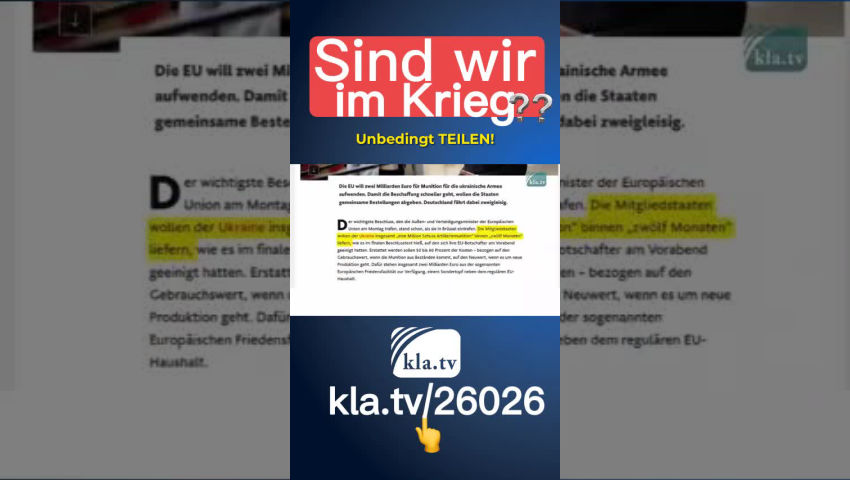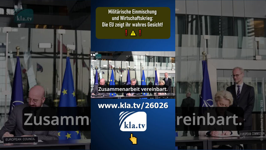 Das Friedensprojekt EU befindet sich im Krieg! Dies geht aus Äußerungen des EU-Außenbeauftragten Josep Borrell bei der Münchner Sicherheitskonferenz 2023 hervor. Er argumentiert, dass die Ukraine den Krieg ohne Munition nicht gewinnen könne. Borrell sagte: „Wir sind im Kriegsmodus.“ Es gehe jetzt darum, schnell zu reagieren. „Sind im Kriegsmodus“ – EU verspricht Ukraine Hilfe bei Munition EU stockt Militärhilfe um zwei Mrd. Euro auf Eine Million Granaten in zwölf Monaten Die Mitgliedsstaaten wollen der Ukraine insgesamt „eine Million Schuss Artilleriemunition“ binnen „zwölf Monaten“ liefern. Militärische EU – Ausbildungsmission für Ukraine beschlossen Die Europäische Union – und somit jeder EU-Bürger (!) – befindet sich im Krieg gegen Russland. Kla.TV beleuchtet in dieser Doku die Entstehungsgeschichte und Entscheidungsträger der EU – von den Gründervätern bis zur aktuellen Spitzenpolitik. Wer steuert die Europäische Union und welche Ziele verfolgt sie wirklich? Erfahren Sie zu Beginn, wie sich die EU im Krieg gegen Russland befindet. In den weiteren Kapiteln gehen wir der Frage nach, wie es soweit kommen konnte. KAPITEL 1 – Die Europäische Union befindet sich im Krieg Am 10. Dezember 2012 wurde die Europäische Union mit dem Friedensnobelpreis ausgezeichnet. 10 Jahre später beteiligt sich die EU mit Militärlieferungen in Milliardenhöhe am Russland-Ukraine-Krieg. Statt zu deeskalieren und Friedensverhandlungen zu fokussieren, wird der Krieg dadurch zusätzlich befeuert. Für die militärische Einmischung mit Waffen und Ausrüstung im Russland-Ukraine-Krieg stellte die EU bisher 4,5 Milliarden Euro bereit. Die aktuelle Kriegspolitik der Europäischen Union wird dabei gekonnt als Friedenspolitik getarnt. Friedensfazilität – so nennt sich das kriegerische Finanzierungsinstrument der EU, aus der die Finanzmittel für die Kriegsbeteiligung kommen. Am 10. Januar 2023 haben die EU und die NATO in Brüssel außerdem eine zukünftige strategische Zusammenarbeit unterzeichnet. Da sich die EU in den Russland-Ukraine-Krieg militärisch einmischt, ist die gesamte EU bereits an einem Krieg eines Nicht-EU-Mitgliedslandes beteiligt. Dies riskiert und provoziert die Gefahr eines dritten Weltkrieges und die Ausbreitung des Kriegsgeschehens auf europäischem Boden. Zudem befindet sich die EU in einem Wirtschaftskrieg mit Russland. Seit der Annexion der Krim durch Russland im Jahr 2014 und vor allem seit Beginn des Krieges zwischen Russland und der Ukraine im Februar 2022 wurden zahlreiche Sanktionen gegen Russland verhängt. Doch diese treffen vorwiegend Europa – insbesondere die europäische Bevölkerung, da die Sanktionen die Energiepreise und die Inflation in Europa nach oben treiben. In der aktuellen Außen- und Sicherheitspolitik der EU wird zudem deutlich: Die EU-Länder unterwerfen sich den Vorgaben der EU-Spitze! Und dies, obwohl bei allen wichtigen Entscheidungen auf EU-Ebene – wie im Fall der Waffenlieferungen und Sanktionen – Einstimmigkeitsprinzip herrscht, was jedem Staat de facto ein Vetorecht gibt. Stimmt nur ein einziges Land dagegen, so würde die Kriegsbeteiligung nicht zustande kommen. Dieses Einstimmigkeitsprinzip und Vetorecht betrifft Entscheidungen die im Rat der Europäischen Union zur Außen- und Sicherheitspolitik getroffen werden. Der Rat der Europäischen Union setzt sich bei der Abstimmung über Waffenlieferungen und Sanktionen aus den Außenministern der EU-Mitgliedsstaaten zusammen. Länder, wie Ungarn und Österreich, die sich nicht an den Waffenlieferungen beteiligen, ermöglichen diese aber dadurch, indem sie die Möglichkeit der „konstruktiven Enthaltung“ nützen. Während sie sich bei der Abstimmung enthalten, nützen sie aber gleichzeitig ihr Vetorecht einer NEIN-Stimme zur Kriegsbeteiligung nicht. Warum wird dieses Vetorecht nicht genützt und warum wird sogar von einem neutralen Land wie Österreich nicht für Nein gestimmt und dadurch die Beteiligung am Krieg verhindert? Um diese Frage zu beantworten, muss verstanden werden, wie die EU funktioniert und aufgebaut ist. KAPITEL 2 – EU-Mitgliedschaft führt zur Abgabe der nationalstaatlichen Souveränität Die Anfänge der EU gehen auf die 1950er-Jahre zurück. Am 9. Mai 1950 präsentierte der damalige französische Außenminister Robert Schuman die Idee, die französisch-deutsche Kohle- und Stahlproduktion einer gemeinsamen Behörde zu unterstellen. Dies ging als „Schuman Plan“ in die Geschichte ein und führte im April 1951 zur Gründung der Europäischen Gemeinschaft für Kohle und Stahl. Die EU feiert daher jährlich am 9. Mai den Europatag. Heute ist die EU ein Staatenverbund aus 27 europäischen Staaten mit insgesamt 450 Millionen Einwohnern. Die EU wurde im Laufe der Zeit immer mehr zu einer politischen Union geformt, die zunehmend Einfluss und eine politische Machtstellung über die Mitgliedsstaaten erhielt. 1957 wurde in den Verträgen von Rom die Europäische Wirtschaftsgemeinschaft von den Staaten Belgien, Frankreich, Italien, Luxemburg, Niederlande und der Bundesrepublik Deutschland gegründet. 1987 wurde die bis zu diesem Zeitpunkt auf wirtschaftliche Zusammenarbeit ausgerichtete Gemeinschaft in eine politische Union umgewandelt. Durch den Vertrag von Maastricht im Jahr 1992 geschah die Erweiterung um eine gemeinsame Außen- und Sicherheitspolitik. In folgenden Reformverträgen – zuletzt im Vertrag von Lissabon, der 2009 in Kraft trat – wurden die überstaatlichen politischen Zuständigkeiten der EU ständig ausgebaut und die nationalstaatlichen Regierungen entmachtet. In mehreren Reformverträgen, zuletzt im Vertrag von Lissabon 2009, wurden die überstaatlichen Zuständigkeiten der EU Schritt für Schritt ausgebaut. Dies führte dazu, dass heute ca. 90 % der Gesetzgebung in den EU-Mitgliedsstaaten die Umsetzung von EU-Gesetzen betrifft. Dies stellt eine enorme Einschränkung der eigenstaatlichen Souveränität eines EU-Mitgliedstaats da