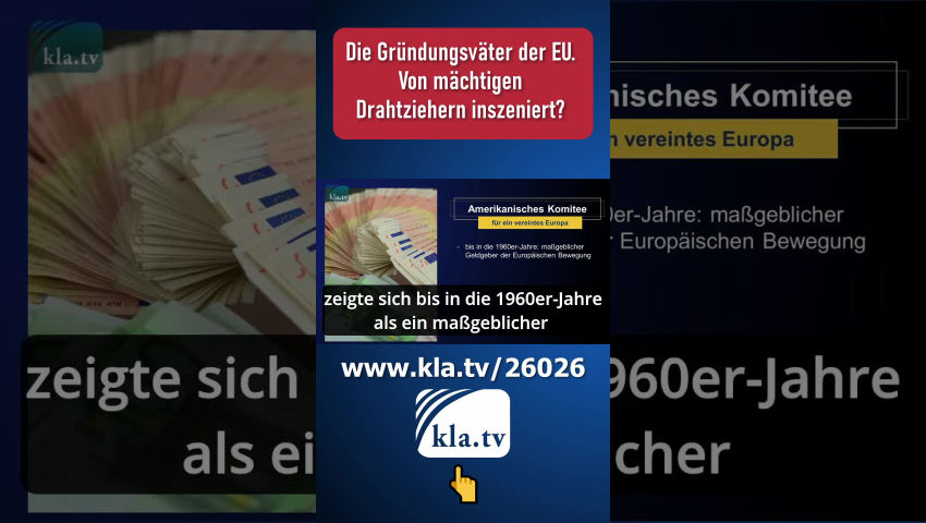 Die Europäische Union – und somit jeder EU-Bürger (!) – befindet sich im Krieg gegen Russland. Wie konnte es so weit kommen? Kla.TV beleuchtet in dieser Doku die Entstehungsgeschichte und Entscheidungsträger der EU – von den Gründervätern bis zur aktuellen Spitzenpolitik. Wer steuert die Europäische Union und welche Ziele verfolgt sie wirklich?