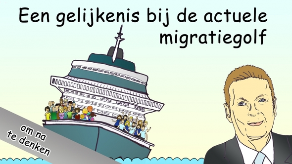 Hier volgt het kortverhaal van Peter Schmidt, voorzitter van de vereniging “Deutscher Arbeitgeber Verband e.V.”. Het verhaal is een kleine, maar betekenisvolle gelijkenis van de migratiegolf die nu plaatsvindt. Het verscheen in het novembernummer 2018 van het Zwitserse tijdschrift “Recht und Freiheit”: “Stel u voor dat u en uw familie passagiers zijn op een droomschip op de oceaan. Plotseling gebeurt het ongelofelijke: u moet sprakeloos toekijken hoe de compleet doorgedraaide kapitein op volle zee, onder gejuich van de hele bemanning, gaten boort in de zijkant van het schip, zodat het water zich niet zo buitengesloten voelt. Wanneer u en andere passagiers er angstig op wijzen dat het schip onvermijdelijk zal zinken, krijgt u als antwoord dat dit op geen enkele manier is bewezen. Integendeel, het is zelfs wetenschappelijk ondubbelzinnig opgehelderd, dat de mens om te leven dringend water nodig heeft. Jullie worden beticht allemaal fanatieke waterhaters zijn, die uit domheid complottheorieën volgen. Terwijl het schip steeds meer naar links overhelt, krijgen de andere passagiers enkel aanwijzingen om niet te praten met die 'fanatieke waterhaters' aan de rechterkant van het schip die, zonder enige reden, alleen maar paniek willen zaaien. Op uw vraag hoe het zinken kan worden voorkomen, krijgt u als antwoord: “Het ligt niet in onze macht hoeveel water er nog komt. Bovendien zegt de kapitein: “Ik kan het plan alleen geven als ik er een heb. Maar we redden het.” Het laatste wat u meekrijgt is het nieuws op de boordradio, dat de kapitein genomineerd is voor de Nobelprijs voor de natuurkunde. U wordt badend in het zweet wakker en stelt vast: “De nachtmerrie is echt....”.