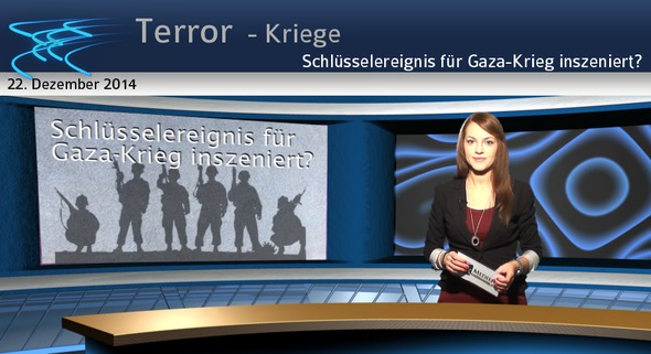 Verehrte Zuschauer. Sie erinnern sich noch an den Gaza-Krieg in diesem Jahr? In der folgenden Sendung werfen wir die Frage auf, wurde das Schlüsselereignis für diesen Krieg inszeniert? Ich begrüße Sie Dazu aus dem Studio Hannover. Die Entführung von drei israelischen Jugendlichen am 12.Juni 2014 war der Auslöser, der sich zum diesjährigen Gaza- Krieg ausweitete. Laut dem Journalisten Gerhard Wisnewski wurde dieses Ereignis zuvor bereits durch Mossad*-Chef Tamir Pardo in einer Sitzung des israelischen Sicherheitskabinetts vorausgesagt. Pardo war gegen ein Sicherheitsgesetz, um das ein heftiger Streit entbrannt war. Er malte den Ministern ein Szenario vor Augen, das dem Kidnapping der drei israelischen Teenager gespenstisch ähnlich war. Wörtlich: „Was werden Sie tun, wenn in einer Woche drei 14-jährige Mädchen aus einer der Siedlungen entführt werden?“ Exakt eine Woche später wurden tatsächlich drei israelische Jugendliche entführt mit dem einzigen Unterschied, dass es Jungen waren. Sogleich wurde die Hamas als Schuldige ausgemacht, obwohl es keine Indizien hierfür gab. Pardos „Prophetie“ legt jedoch die Vermutung einer gezielt inszenierten Entführung durch den Mossad nahe. Denn für Israel kam diese Entführung zu einem strategisch günstigen Zeitpunkt: Die beiden großen palästinensischen Bewegungen Fatah und Hamas hatten sich nach jahrelanger Feindschaft soeben in einer Koalitionsregierung vereinigt. Da ist es naheliegend, dass Israel einen Vorwand suchte, um die Arbeit dieser Regierung von Beginn an zu torpedieren. Weitere erschreckende Enthüllungen, die uns zu diesem Thema erreicht haben, berichten wir nun aus dem Studio Bremen! Bleiben Sie dran.