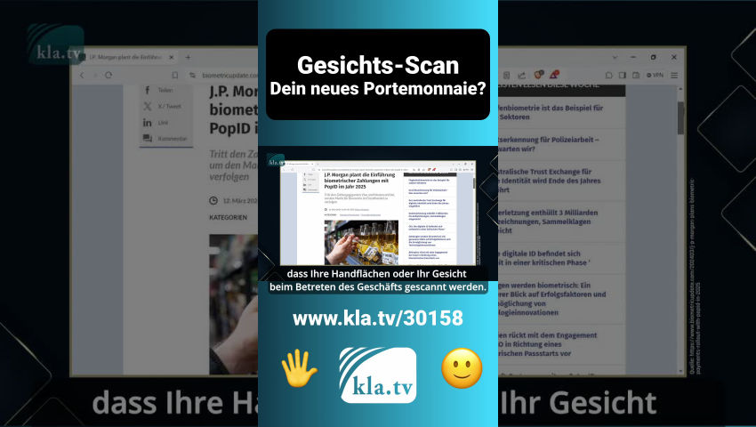Stellen Sie sich vor, Sie können einkaufen, also nehmen, was Ihnen gefällt, ganz ohne Portemonnaie, ohne Plastikkarten, ohne Kassierstationen und gehen mit Ihrem Einkaufsgut nach Hause. Von Ihrem Guthaben wird alles fein säuberlich detailliert abgebucht. Sollte sich Ihr Gesundheitszustand negativ verändern, werden die zuständigen Stellen in Echtzeit informiert und es wird Ihnen geholfen, bevor Sie die gesundheitliche Gefahr womöglich selbst bemerkt haben. Damit würde Ihr Alltag erleichtert und Ihr Leben sicherer, nicht wahr? Zukunftsmusik oder Albtraum für Sie? Diese Gegebenheiten könnten schneller Realität sein, als Sie denken. Die US-Großbank JPMorgan Chase plant für 2025 die Einführung eines biometrischen Zahlungssystems, welches ermöglicht, Einkäufe zu tätigen ohne Bargeld, Kredit- oder Debitkarten. Sie müssen lediglich akzeptieren, dass Ihre Handflächen oder Ihr Gesicht beim Betreten des Geschäfts gescannt werden. J.P. Morgan Payments habe dieses System bereits im Jahr 2022 durch einen Lebensmitteldienstleister in Texas erprobt. 35,83 Milliarden Transaktionen im Wert von 2,03 Billionen US-Dollar sollen abgewickelt worden sein. Biometrische Zahlungen sollen bis 2026 weltweit 3 Milliarden Nutzer und einen Wert von 5,8 Billionen Dollar erreichen, wird von Goode Intelligence prognostiziert. J.P. Morgan ist nicht der einzige Zahlungsverkehrsdienstleister, der aktiv die biometrischen Verfahren für persönliche Einkäufe erforscht: Visa stellte seine Technologie für das Bezahlen mit der Handfläche vor und erwartet, dass sich biometrische Zahlungen innerhalb des nächsten Jahrzehnts durchsetzen werden. Die Pilotprojekte umfassen die Authentifizierung von Handflächen, Fingerabdrücken und Gesichtern für Zahlungen. Sie propagieren ein schnelleres und sicheres Kassiererlebnis. Dazu sind Kunden offenbar bereit, zum Bezahlen ihre biometrischen Daten zu verwenden. In dieselbe Richtung geht die Entwicklung zur Überwachung, zur Förderung und zum Erhalt Ihrer Gesundheit. Haben Sie schon von Nanotattoos als Biosensoren gehört? Tätowierungen sind längst populär geworden. Sie haben nicht nur ihre Verborgenheit verloren, sondern entwickeln sich zu einem Stück Technologie. Entwickelt wurden Nanotattoo-Sensoren (BNTS) von Kristen D. Belcastro, Dozentin an der Yeditepe-Universität in Istanbul, und Onur Ergen, dem stellvertretenden Vorsitzenden für Forschung und Entwicklung an der Abteilung für Elektronik und Kommunikation der Technischen Universität Istanbul. Eine Methode, mit der Tätowierungen implantiert werden können, die passiv und drahtlos kommunizieren, ohne Implantate oder externe Energiequellen zu benötigen. Das Tattoo reflektiere empfangene Hochfrequenzsignale und stelle damit eine Verbindung mit dem Smartphone her. Dieses kann so kontinuierlich überwachen und die gesammelten Informationen mittels KI auswerten. Die Entwicklung kompakter und selbstständiger Biosensoren soll es ermöglichen, unseren Gesundheitszustand zuverlässig, in Echtzeit und kostengünstig zu überwachen. Ob hinter diesen technischen Entwicklungen das Interesse dem Wohle des Menschen gilt, wie vordergründig lauthals glaubhaft gemacht wird, muss bezweifelt werden! Kla.TV hat bereits in dutzenden Sendungen aufgezeigt, wie die Menschheit schrittweise in verschiedenen Bereichen in eine Totalkontrolle geführt wird. So sollen zum Beispiel die Bürger durch Abschaffung des Bargeldes und Nutzung des digitalen Euro gläsern und manipulierbar werden. Faktisch wird durch den digitalen Euro die finanzielle Privatsphäre der Menschen abgeschafft! Als Basis zur Totalüberwachung selbst in den eigenen vier Wänden kann Ihr WLAN genutzt werden. Zusammenfassend muss gesagt werden: Die Speicherung und zunehmende Verwendung der biometrischen Daten der Menschen wird eine totale „Überwachungsdiktatur“ ermöglichen. Sie öffnet dem Missbrauch durch den Staat, der seine Bürger auf Schritt und Tritt beobachten kann, aber auch Kriminellen, Tür und Tor. So plant das WEF mit seiner Agenda 2030, jeden Menschen „glücklich“ zu machen ohne Privatbesitz. Sein Leben und Denken sollen umfassend kontrolliert und manipuliert werden können. Stichwort Transhumanismus, also die Verschmelzung von Mensch und Maschine, wird von globalen Schaltstellen wie WEF und UNO als unverzichtbare Weiterentwicklung des Menschen propagiert. Er soll ein kontrollierbares und steuerbares biotechnisches Produkt für die kriminelle Machtelite werden. Quasi mit einem einzigen Knopfdruck ausschaltbar, falls er keinen Nutzen mehr erbringt. Wie kann der Mensch einem solchen gleichsam biometrisch-digitalen Gefängnis jemals wieder entfliehen? Deshalb an dieser Stelle eine deutliche Warnung vor der heuchlerischen Propaganda für scheinbar positive Anwendungen solcher digital-biometrischen Technologien! Widersetzen Sie sich einer technisierten, manipulativen Diktatur, indem Sie sich schon heute persönlich mit wahrheitsliebenden Menschen vernetzen. So werden Sie Teil einer freien „Neuen Welt“. Denn das könnte überlebenswichtig werden.