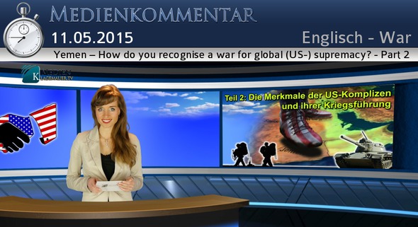 Welcome back valued viewers to the second half of our media commentary: “Yemen, how to recog-nize a war for global (US-) supremacy” After having focused on the characteristics of the conflict and target country in part one, in this broadcast we will take a look at 2 more points. The second point: What are the characteristics of the US allies who represent America in their own countries, starting and carrying out wars? As we already mentioned in part 1, there is an important main crite-rion and that is: US allies must be pro-American - loyal towards the USA. They are promised a bet-ter future with many benefits. It makes no difference if they are violent terrorists, religious fanatics, or even an absolute monarchy like Saudi Arabia. They may violate human rights, use violence, dis-respect basic democratic principles etc. for as America’s allies they will hardly ever be held accoun-table - on the contrary, they are even supported. High German government member Mr. Seehofer for example vocally expressed support for German weapons export to Saudi Arabia. Concerning America’s strive for global-supremacy, the central theme is very simple: everything is allowed as long as it serves their purpose. That “anything is allowed” including for example human-rights vi-olation, ”as long as it serves the purpose” - that is; the USA’s purpose of retaining its position of global supremacy - this is illustrated clearly for instance by Saudi Arabia. In Saudi Arabia Wahha-biism is a state doctrine. Wahhabbiism is an orthodox branch of Sunni Islam. Wahhabis claim that other Muslim are apostate and the Shiites are even denounced completely as Muslim. The following practices in public daily life in Saudi Arabia are a direct result of Wahhabi influence: women are not allowed to drive ( the only country on earth where this is the case!) Women may not be seen in public with men outside their families. Public Sharia penalties such as execution or whippings are carried out. Freely practicing religion is forbidden. Other human-rights watch groups such as Amnesty International list additional case facts - imprisoning political opposition, repression of freedom of opinion, freedom of speech and freedom to practice ones religion, impri-sonment without accusation or trial, exiling political prisoners, the so-called Hadd-penalty meaning amputating body parts and the death penalty. Who could still claim in view of these practices by America’s allies that the United States govern-ment is even to a small degree interested in democratic principles, human-rights or world peace? No - instead, democratically elected heads-of-state like Assad of Syria or Russia’s President Putin are accused of being a danger to world peace. Clearly another characteristic of US allies is that they instigate unrest even to the degree of civil war in the target countries of the US strategists, as happened in Syria and Yemen. The conflict in Yemen was agitated from the start, through intervention by Saudi Arabia and the so-called Arab Peninsula Al-Qaida. Just recently - in October 2014 - a suicide bomber blew himself up in a Huthi meeting, killing 50 people. On the 21st of October 2014 33 more people were killed as a bomb exploded in a public building. The Huthis accuse the government of not doing anything against the Al-Qaida at-tacks. As we already reported, Al Qaida was initiated, financed and equipped by the CIA in the 1990s, to be instrumented for US interests. To summarize the second point on these characteristics of US allies - first that everything is allowed as long as it serves their purpose and second - that they instigate unrest in the target countries. For the third point concerning the characteristics of wars caused by such US allies - back to studio Wiesbaden. Thank you studio Dresden. Now our third point regarding the features of a proxy war of US allies. The characteristic theme repeatedly seen in modern US- directed wars is that civilians and public facilities are intentionally attacked. We explained this in our instructional film: “Modern wars – how do they work?”. It is confirmed by the documentary film “When US-Presidents lie” as follows: While in the Vietnam War 70% of the dead were civilians, in the Iraq War in 2003 and the following wars there were more than 90% civilians among the victims! This number can be observed in all US-directed wars starting with the war in Yugoslavia and continuing until the current wars in Syria and Yemen. The Yemen war also would never be possible without US leadership. For it is the USA – according to their own statements – giving logistic and secret service support, delivering weapons and coordinating air strikes for Saudi Arabia and their allies. The war in Yemen is also only about weakening and destabilizing a strategically important country and to kill possible opposition against the US hegemony - without sparing even women and children. Here some “official” figures from the United Nations, according to a Reuters report from April 17th , 2015. 90% of victims are civilians. Apparently these are no empty figures, for thousands of families fled from their homes – 150,000 people are fleeing – about 7.5 million people needed help. 5 hospitals, the 3 biggest airports of the country, 15 schools, bridges, mosques and others facilities have been destroyed. Between March 19th and April 13th 767 dead were registered. The real figure is certainly much higher. The World Health Organization, UNICEF and other human rights organizations reported and confirmed the following: air strikes in Yemen devastated refugee camps. There were no proofs for relevant military targets. - in a refugee camp in the North at least 45 civilians were reportedly killed and 200 others injured. The Saudi Arabian Air Force bombed a food storage warehouse of the international help organization Oxfam together with facilities for drinking water supplies for thousands of families. Within one wee