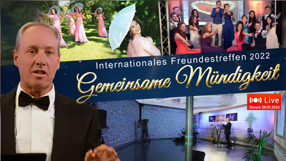 Programmvorschau: Internationales Freundestreffen 2022: Das Geheimnis der gemeinsamen Mündigkeit. Erfahre in einer weltbewegenden Rede von Ivo Sasek, welche Ur-Quellen der Befähigung in uns bereits angelegt sind. Höre, welches Potenzial zur Krisenbewältigung in der gesamten Menschheit schlummert. Erneut erlebten tausende von Zuschauer diesen nun schon seit über dreißig Jahren stattfindenden Tag dieses Mal live im Webcam-Stadion. [Elias Sasek, IT-Verantwortlicher]: „Es sind Konferenzzuschaltungen aus sage und schreibe 51 Ländern dabei, so viel wie noch nie!“ Es war ein internationales Fest der Freundschaft, welches live in acht Sprachen simultan übersetzt wurde. Wie in den Anfängen versammelten sich weltweit große und kleine Gruppen vor Ort, um diesen Tag gemeinsam zu verbringen. Groß und Klein, Alt und Jung; religiös oder nicht und ganz egal, mit welchem Hintergrund – für jeden war es ein Abtauchen in herrliche Wirklichkeiten. Erlebe diesen Tag noch einmal mit uns! Werde beschenkt von all den Kostbarkeiten an Kunst und Kultur. Erhalte Einblick in die Praxis gemeinsamer Mündigkeit und berühre pure Lebensfreude. Werde Zeuge von einer Neuen Welt. Lass dich mit hineinnehmen in einen Tag, der die Welt bleibend verändern wird! Ivo Sasek (2.Teil: Zur Mündigkeit geboren): „Der höchste Lebensgenuss, den du erfahren kannst ist das ununterbrochene Mitfliessen, das Beobachten und Gleichsprechen, zugleich Handeln, mitgehen mit dem mündigen Geist, der in dir wirkt. Und ich sag dir, es gibt kein höheres Lebensgefühl, es gibt keinen höheren Gewinn als genau diese direkte Verbindung nach oben. (…) Ein persönlicher und gemeinschaftlicher „Ich will niemals wieder zurück-Status“ wollen wir miteinander erreichen. Okay? (…) Achte darum genau, auf welches Fundament du aufbaust. Ich empfehle dir heute ein Fundament, das verhält. Ich garantiere es dir. Ich bin durch tausende Stürme hindurch mit meinem Fundament – es hat bis heute gehalten wie ein Berg.“ Einleitung zu Ivo Saseks Rede von Lois Sasek: Ja, es ist so. Wir kommen aus verschiedensten Himmelsrichtungen heute und aus ganz unterschiedlichsten Hintergründen. Jeder von uns hat jetzt auch so ganz seine eigenen Vorstellungen von diesem Tag. Und jetzt gleich mal, von all diesen 1000 Himmelsrichtungen, um uns mal zu sammeln auf das, was uns heute wirklich erwartet, möchte ich diesen Tag mit einem Rätsel eröffnen. Seid Ihr ready? (Publikum antwortet mit Ja) Was ist das? Das sieht gruselig aus, bedrohlich, angsteinflößend. Kommt das aus der Hölle? Das ist ja unheimlich, das ist ein … ist das ein Monster? Doch liebe Gäste, liebe Kinder, falls Ihr jetzt Angst habt, Freunde und Bekannte aus der ganzen Welt: Wollt Ihr wissen, was es wirklich ist? Oder haben wir uns jetzt schon unser Urteil gebildet? Wir haben es ja gesehen: Das ist ein Monster, ganz klar. Von mir aus aus dem Fernseher, wo auch immer, da sieht man so Sachen. Aber ich sage, um zu sehen, was das wirklich ist, braucht es Licht! Und darum sage ich jetzt: Licht an! Das ist ja traumhaft, herrlich, friedlich, paradiesisch, erinnert an Freiheit, Schönheit, an den tollsten Urlaub, an Glück. Ist es nicht himmlisch, liebe Kinder, liebe Freunde, Gäste? Ist es nicht göttlich, prachtvoll und vielfältig? Kann sich jetzt noch irgendjemand vorstellen, dass das genau dasselbe Objekt ist, das wir vorher als Monster gesehen haben? Und der Unterschied macht nur das Licht! Darum spielt Licht so eine riesengroße Rolle auch heute, liebe Leute. Wenn mein Vater nachher zu uns sprechen wird, so erlebe ich es seit 33 Jahren, da enthüllt er Wirklichkeiten, die für`s natürliche Auge unsichtbar sind. Aber wenn man sie im Licht sieht, also im Herzen, im Geist wahrnimmt, dann fühlt man sich wie der Fisch im Wasser oder der Delfin. Also, mir geht es auf jeden Fall genauso wie diesem Delfin hier. Solche Tage wie der heutige, das ist für mich Malediven. Jede Stunde, wo es länger geht, ist ein Traum. Doch im selben Moment kann es für andere ganz lange wirken, weil sie einfach nur das sehen … (unscharfes Bild) Das ist wirklich langweilig! Was hat er vergessen? Die Taucherbrille! Also eben darum dürfen wir jetzt ein paar kleine Vorkehrungen treffen, dass es auch wirklich klappt, und wir alle dasselbe wahrnehmen, nämlich: Darum, Achtung: Schauen wir heute mit den inneren Augen und sehr Ihr, wie klar es wird. Wir schauen mit dem Herzen, mit den Herzensaugen, nicht so, wie wir durch den ganzen Tag gehen: Hier eine Sitzung, da etwas besprechen … Nein, jetzt gehen wir auf Herzensantenne. Aber wenn ich jetzt diese (Taucherbrille) einfach ganz so schnell überstülpe … So, okay, ich geh jetzt ins Wasser, ich will jetzt Delfine sehen. Und ich hupf rein: Dann sieht es nach ein paar wenigen Momenten so aus: Die Brille läuft an, ich sehe nichts mehr und dann macht es nach ganz, sehr kurzer Zeit keinen Spaß mehr. Was, was? War da ein Delfin? Also, so kann es Dir heute auch gehen: Alle schwärmen von Delfinen, von Feuerfischen, von Rochen. Und du sagst: Ich habe nur Taucherbrille gesehen oder ein Monster. Also, was kann man da denn machen? Also erstmal diese Haarsträhne hier gehört nicht unter die Taucherbrille, weil dann kommt eben das Wasser und am Schluss ist es in die Nase. Und das sage ich, das sind die Ablenkungen oder? Wenn du jetzt auf deinem Laptop oder Rechner noch andere Fenster offen hast: YouTube oder ein Chat- Programm, was weiß ich. Wisst Ihr was? Einfach schließen, schließen! Wir nehmen die Ablenkung raus und machen richtig sauber … dichte Stellen … Wir sind auch …, wir bleiben dran. Wir gehen nicht einfach mal schnell raus: Jetzt muss ich mal schnell eine rauchen. Wir bleiben dran! Sonst kommt das Wasser mit rein, versteht Ihr? Es gibt noch andere Möglichkeiten, warum sie anläuft. Man kann ja auch noch reinspucken, wenn man das macht … Vorher Reinspucken kann auch ganz gut helfen. Andere lieben so einen Spray … (zeigt Spray …) Oder, noch a