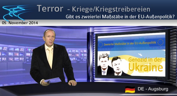 Ich begrüße Sie ganz herzlich bei Klagemauer TV aus dem Studio Augsburg. Unser Thema heute ist die Frage: Gibt es zweierlei Maßstäbe in der EU-Außenpolitik? Beginnen möchte ich mit einem Zitat von Arnold Toynbee aus „der Gang der Weltgeschichte“ „Werden wir richtig informiert? Ich übertreibe nicht, wenn ich behaupte, dass von der Antwort auf diese Frage die Zukunft der menschlichen Gesellschaft abhängt.“ Wir möchten unseren Teil dazu beitragen, dass Sie liebe Zuschauer, richtig informiert sind. Als erstes beleuchten wir die Situation in der Ukraine: Immer mehr Menschen in Europa äußern Bedenken, dass in der europäischen Außenpolitik mit zweierlei Maß gemessen wird. Während der ehemalige ukrainische Präsident Janukowitsch beschworen wurde, bloß nicht gegen die Zivilbevölkerung vorzugehen, komme es unter dem aktuellen Präsidenten Poroschenko zum Einsatz von Splitterbomben (mit Nägeln bestückt) und Phosphorbomben gegen das eigene Volk. Wo bleibt hier der Aufschrei oder gar eine Verurteilung dieses Vorgehens durch die EU-Regierenden? Der Ausspruch Angela Merkels vom Februar 2014 „Wer das Militär gegen die eigene Bevölkerung einsetzt, hat jede Legitimation verloren“ scheint im Falle Poroschenkos nicht mehr zu gelten. Ein weiteres Beispiel zu zweierlei Maß der EU-Außenpolitik zeigt den Genozid in Gaza. Während die EU erneut gegen Russland, einen souveränen Staat, wegen nicht nachgewiesener „Delikte“ gegenüber der Ukraine Sanktionen verhängt, schaut  sie beim aktuellen Gaza-Konflikt tatenlos zu. Obwohl durch die massive Härte Israels gegen die Palästinenser bereits Ende Juli 2014 über 1.000 palästinensische Tote zu beklagen waren. Würde Russland wie Israel derart brutal gegen die Zivilbevölkerung eines benachbarten Landes vorgehen, welch großer Aufschrei des Entsetzens und welch drastische Konsequenzen (neben Sanktionen) durch die EU-Regierungen hätte dies wohl zur Folge? Aus diesen Ereignissen wird eines deutlich: Es geht den EU-Regierungen offensichtlich nicht darum, die Zivilbevölkerungen zu schützen und weitere Eskalationen zu vermeiden. Wenn zwei dasselbe tun … Gerne weisen wir Sie noch auf eine Veranstaltung zum Thema „Frieden“ hin: Am 22. November findet in Berlin die dritte COMPACT-Konferenz statt. Das Thema: Frieden mit Russland! Ein souveränes Europa! Alle Umfragen zeigen: Die Menschen wollen keinen Krieg gegen Russland, auch keinen kalten! Die Politik von USA, NATO und EU hat uns in die gefährlichste Lage seit der Kubakrise 1962, vielleicht sogar seit dem Ende des Zweiten Weltkrieges gebracht. Die Einkesselung unseres Nachbarn im Osten liegt nicht im europäischen Interesse. Wollen auch Sie Frieden mit Russland und ein souveränes Europa? Dann dürfte Sie die 3. Compact-Konferenz interessieren. Nähere Infos erhalten Sie unter: https://www.compact-online.de/friedenskonferenz/ Danke, dass Sie heute wieder dabei waren. Schließen möchte ich mit einem Zitat von George Orwell aus „1984“ „In Zeiten, da Täuschung und Lüge allgegenwärtig sind, ist das Aussprechen der Wahrheit ein revolutionärer Akt.“ In diesem Sinne wünsche ich Ihnen einen Abend zum nachdenken - und seien Sie revolutionär in dem Sie unsere Sendungen weiterempfehlen. Auf Wiedersehen.