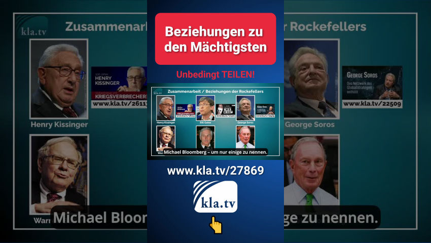 „Rockefeller ist sicher einer der bekanntesten Namen der Welt und um sein Vermögen – oder besser, um das Vermögen des Rockefeller-Clans – gibt es unzählige Gerüchte. Eines kann jedenfalls als sicher gelten: Die offiziellen Schätzungen über den Reichtum der Rockefellers sind ganz sicher zu niedrig angesetzt.“ Mit diesen Worten startet das Kapitel „Rockefeller Foundation“ des Buches „Inside Corona“. Der Autor Thomas Röper zeigt darin auf, dass die Rockefeller Foundation noch heute einen wesentlichen Einfluss auf das Weltgeschehen hat. Auch wenn in den Mainstream-Medien heutzutage kaum über die Rockefellers berichtet werde, sei deren Einfluss auf Politik, NGOs und Medien nicht zu unterschätzen. Kla.TV hat für Sie die Nachforschungen Röpers zusammengefasst und mit eigenen Recherchen über die Geschichte und globale Vernetzung der Rockefeller-Dynastie ergänzt. Wie groß ist der Reichtum der Rockefellers heute? John Davison Rockefeller Senior, der Gründer der Rockefeller-Dynastie, hat im 19. Jahrhundert das Ölimperium Standard Oil Company aufgebaut, das am Anfang des 20. Jahrhunderts in den USA praktisch der Ölmonopolist war. Er galt als einer der reichsten Männer der Geschichte und ging mit rund 900 Mio. Dollar Vermögen in den Ruhestand. Dieses Vermögen würde einem heutigen Wert von 300 Mrd. US-Dollar entsprechen. Heute zählt der Clan gemäß offiziellen Medienberichten nicht einmal mehr zu den 600 reichsten Familien der Welt. Anstatt ihr Vermögen in hun-dert Jahren zu mehren, soll ihr Reichtum immer mehr verringert worden sein. Doch wie kann das sein? Röper schreibt in seinem Buch: „Es ist ausgesprochen schwie-rig, das Vermögen des Clans korrekt zu schätzen, denn sie sind wahre Meister da-rin, ihr Vermögen zu verschleiern.“ Konnten die Nachkommen des mächtigen US-Unternehmers John D. Rockefeller nicht mit Geld umgehen? David Rockefeller, Enkel von John D. Rockefeller Senior, ist die wohl bekannteste und wichtigste Figur der Rockefeller Familie. Bis zu seinem Ableben im Jahr 2017 trug er das Zepter der Familiendynastie und verfügte über großen Einfluss auf die internationale Politik. Es ist davon auszugehen, dass er die Macht der Familie ge-schickt ausgebaut, anstatt verkleinert hat. Er galt neben den Rothschilds als Welt-bankier. 1960 übernahm er die Führung der Chase Manhattan Bank. Mitte der 1970er Jahre wurde sie zur drittgrößten Bank der Welt. Im Jahr 2000 fusionierte die von David Rockefeller kontrollierte Chase Manhattan Bank mit der Bank der Morgan Familie und es entstand die heutige JPMorgan Chase. Sie ist die größte US-amerikanische Bank und gemäß dem Wirtschaftsmagazin Forbes im Jahr 2022 das viertgrößte an einer Börse notierte Unternehmen. Die Familie Rockefeller und die Familie Morgan hatten schon spätestens seit Beginn des 20. Jahrhunderts Kontakt zueinander. Kurz zusammengefasst: Die Rockefellers pflegen Beziehungen zu den wichtigsten Familien der Hochfinanz. Beispielsweise auch zum mächtigsten Fi-nanzkonzern BlackRock. BlackRock ist der größte weltweite Vermögensverwalter, der mit Stand vom Januar 2022 zehn Billionen US-Dollar verwaltet. Nur als ein Bei-spiel sei erwähnt, dass David Rockefeller 2016 ein Mittagessen zu ehren von Larry Fink veranstaltete. Larry Fink ist Gründer, Vorsitzender und CEO von BlackRock. Wie damals die New York Post schrieb, waren an dieser Feier weitere wichtige Freunde aus den Hochfinanzkreisen anwesend. Allein diese Verbindungen zeigen auf, dass die Nachkommen von John D. Rockefeller nicht nur selbst ein gutes Handling im Finanzbereich aufweisen – sie haben auch Kontakt zu den wohl mächtigsten und angesehensten Vermögensverwaltern. Wie kamen die Rockefellers zu ihrem Reichtum? Ursprünglich kam die Familie Rockefeller aus einer deutschen Siedlung namens „Rockefeld“, deren Gebiet zum heutigen Landkreis Neuwied in Rheinland-Pfalz gehört. Die Familie wanderte im 18. Jahrhundert nach Amerika aus. Bekannt wurden sie erst durch den Unternehmer John D. Rockefeller und seinen Bruder William, die im 19. Jahrhundert das Ölimperium Standard Oil Company aufbauten, womit sie zum Anfang des 20. Jahrhunderts in den USA praktisch das Ölmonopol hatten. Rockefeller konnte den Ölpreis nach Belieben bestimmen und Geld und Macht anhäufen. Der Präsidentschaftskandidat Theodore Roosevelt versprach deshalb, im Falle seiner Wahl, gegen das Rockefeller-Monopol vorzugehen. Am 15. Mai 1911 ordnete der Oberste Gerichtshof der Vereinigten Staaten die Entflechtung des Unternehmens an, woraufhin der Aktienkurs deutlich sank. Die Standard Oil wurde in 34 kleine Konzerne aufgeteilt. In der Annahme, dass sich der Aktienkurs erholen würde, kaufte Rockefeller die Aktienpakete der einzelnen Unternehmen auf. Am späteren Anstieg des Börsenkurses verdiente er nach vorsichtigen Schätzungen 200 Millionen US-Dollar; was 1901 einem heutigen Wert von ca. 7.3 Milliarden US-Dollar entsprach. Aus der „Entflechtung“ von Standard Oil sind praktisch alle heutigen Ölkonzerne der USA hervorgegangen. Wie NTV und andere Medien im Jahr 2016 berichteten, hätten sich die Rockefeller-Stiftungen aufgrund des bedrohlichen Klimawandels von ihren Anlagen in fossile Brennstoffe getrennt. Gemäß Röper liegt für eine Trennung von den Aktien im großen Stil jedoch kein Nachweis vor. Eins steht fest, die einstige Entflechtung des Konzerns hat den Rockefellers dazu gedient, ihre Macht noch weiter auszubauen und weiteres Vermögen anzuhäufen. Welche Strategie verfolgen die Rockefellers? Henry Kissinger, der einstige US-Außenminister fasste in den 1970er-Jahren die globale Strategie von David Rockefeller folgendermaßen zusammen: „Wenn man das Öl kontrolliert, kontrolliert man ganze Nationen; wenn man die Nahrung kontrolliert, kontrolliert man die Menschen; wenn man das Geld kontrolliert, kontrolliert man die ganze Welt.“ Bereits in früheren Jahren zeigte die Rockefeller-Dynastie ihre Begabung darin, globale Krisen zu i