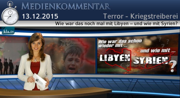 Wieder einmal ist offensichtlich, dass – wie Libyen unter Gaddafi – ein weiteres aufstrebendes Land ausradiert werden soll. Doch wie in unserer Dokumentation vom 1.11.2015 – „Die modernen „Demokratisierungs“-Kriege durchschaut“ – bleibt die Frage offen, wann das Volk dieses Spiel durchschauen und der nachweislich immer krasser werdenden Lügen- und Kriegspropaganda keinen Glauben mehr schenken wird. Deshalb weiterhin unser Aufruf: „Helfen Sie mittels breitflächiger Aufklärung mit, dass wir alle lernen, Lügen und Propaganda rechtzeitig zu durchschauen und einhellig zu sagen: „Nie wieder Krieg! – da machen wir nicht mit!““