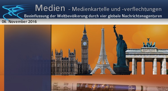 „Nachrichtenagenturen stehen selten im Blickpunkt des öffentlichen Interesses. Dennoch sind sie eine der einflussreichsten und gleichzeitig eine der am wenigsten bekannten Mediengattungen. Sie sind Schlüsselinstitutionen mit substantieller Bedeutung für jedes Mediensystem. Sie sind das unsichtbare Nervenzentrum, das alle Teile dieses Systems verbindet.“ (Wolfang Vyslozil, ehemaliger Geschäftsführer der APA) Es ist einer der wichtigsten Aspekte unseres Mediensystems – und dennoch in der Öffentlichkeit nahezu unbekannt: Der größte Teil der internationalen Nachrichten in allen Leitmedien stammt von nur vier globalen Nachrichtenagenturen aus New York, London, Paris und Berlin. Die Monopolstellung dieser Agenturen hat zur Folge, dass die Auswahl der Berichterstattung, über was berichtet wird und über was nicht, auffallend einheitlich aussieht und oft einfach nur noch abgeschrieben wird. So haben z.B. die Leitmedien über die Friedensprozession in der Ukraine und die Friedensfahrt nach Moskau nicht informiert, da laut dem Schweizer Radio und Fernsehen SRF die großen Nachrichtenagenturen nichts darüber berichteten. Im Gegenteil dazu informierte Kla.tv über die Friedensprozession und war sogar live beim Start der Friedensfahrt in Berlin und auch beim Eintreffen der Friedensfahrer in Moskau dabei. Am Ende der Sendung finden Sie nochmals die Links zu den einzelnen Friedensprozessions- und Friedensfahrtbeiträgen. Doch werfen wir zunächst nochmals einen näheren Blick auf die Friedensprozession in der Ukraine: Am 27. Juli 2016 traf die von der russisch-orthodoxen Kirche organisierte Friedensprozession im Zentrum von Kiew ein. Die Regierung in Kiew sollte dadurch zum Kriegsende im Donbass bewegt werden. Teilnehmer sprechen von ca. 100.000 Menschen, die in Kiew angekommen seien. Andere sprechen von bis zu einer Million Menschen, die in und um Kiew in zahlreichen Zeltlagern, bei tausenden Privatleuten, in kirchlichen Einrichtungen und Hospizen nächtigten und nach der Prozession mit vielen Bussen und Zügen wieder nach Hause zurückkehrten. Die Kiewer Regierung hütete sich, die wahre Zahl preiszugeben. Von den westlichen Leitmedien wurde die Friedensprozession entweder heruntergespielt oder gar nicht erst erwähnt, obwohl die Bilder Bände sprechen. Am 25.Juli 2016 wurde das Schweizer Radio und Fernsehen angefragt, weshalb sie nicht über die Friedensprozession berichteten. Ihre Antwort darauf war folgende: „Bis heute haben wir von den unabhängigen Agenturen, von denen wir Bildmaterial erhalten (Reuters, AP, AFP), keine einzige Meldung und auch kein Videomaterial von diesem Marsch erhalten. Gemäß den Recherchen unseres Korrespondenten ist der Marsch auch bei weitem nicht so groß, wie er dargestellt wird.“ Für die geschändeten Ukrainer tragen die Leitmedien daher zu Recht den Namen: Lügenpresse! Doch wer steckt genau hinter diesen globalen Nachrichtenagenturen? Hierzu schalten wir nun weiter ins Studio Koblenz. Vielen Dank Studio Dresden. Ja, wer steckt hinter diesen globalen Nachrichtenagenturen… 1.) Die amerikanische Associated Press (AP) mit weltweit über 4.000 Mitarbeitern. Die AP gehört US-Medienunternehmen und hat ihre Hauptredaktion in New York. AP-Nachrichten werden von rund 12.000 Medien genutzt und erreichen dadurch täglich mehr als die Hälfte der Weltbevölkerung. 2.) Die quasi-staatliche französische Agence France-Presse (AFP) mit Sitz in Paris und ebenfalls rund 4.000 Mitarbeitern. Die AFP versendet pro Tag über 3.000 Meldungen und 2.500 Fotos an Medien in aller Welt. 3.) Die britische Reuters in London, die privatwirtschaftlich organisiert ist und etwas über 3.000 Mitarbeiter beschäftigt. Reuters wurde 2008 vom kanadischen Medienunternehmer Thomson – einem der 25 reichsten Menschen der Welt – gekauft und zu Thomson-Reuters mit Sitz in New York fusioniert. 4.) Die Deutsche Presse-Agentur (DPA), die über rund 1.000 journalistische Mitarbeiter in circa hundert Ländern verfügt. Die DPA ist im Besitz von deutschen Medienverlagen und Rundfunkanstalten und hat ihre Hauptredaktion seit 2010 im Axel-Springer-Haus in Berlin. Die DPA arbeitet eng mit der amerikanischen AP zusammen und besitzt die Lizenz zur Vermarktung der AP-Dienste im deutschsprachigen Raum. Wenn die Informationen zum Weltgeschehen von nur diesen vier Agenturen verbreitet werden, dann wird das Recht der Weltbevölkerung auf Presse- und Meinungsfreiheit hintergangen. Neben den vier großen Nachrichtenagenturen gibt es noch diverse kleinere, nationale Nachrichtenagenturen. In Österreich und der Schweiz sind dies: • Die Austria Presse Agentur (APA) mit rund 165 Redakteuren. Die APA ist im Besitz von österreichischen Tageszeitungen und des ORF. • Die Schweizerische Depeschenagentur (SDA) mit rund 150 Mitarbeitern, die im Besitz von Schweizer Medienverlagen ist, darunter die Tamedia und NZZ-Gruppe sowie die SRG. Die SDA und APA verfügen über keine eigenen Korrespondentennetze im Ausland. Stattdessen arbeiten sie mit der DPA und den globalen Agenturen zusammen, um Zugang zu den internationalen Nachrichten zu erhalten und ihre nationalen Medien über das Weltgeschehen zu informieren. Daher kommt es, dass die Auswahl und die tendenziöse Richtung der Berichterstattungen von Österreich und der Schweiz fast ausschließlich von den großen Nachrichtenagenturen geprägt sind. Verehrte Zuschauer, zeigen diese Fakten nicht deutlich auf, dass die Bevölkerung über die Absichten von Regierungen und die tatsächlichen Sachverhalte nicht ausgewogen informiert wird und wir nicht mehr von einer freien und unabhängigen Berichterstattung sprechen können? Deswegen unterstützen auch Sie genau aus diesem Grund neue, unabhängige Medien und Plattformen, wie zum Beispiel AZK(www.anti-zensur.info) und Kla.tv (www.kla.tv).