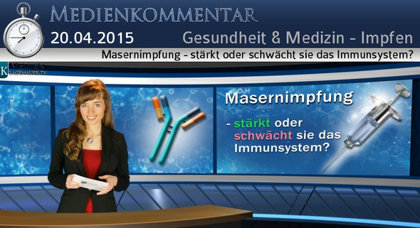 „Masernimpfung – stärkt oder schwächt sie das Immunsystem?“ Zu diesem Medienkommentar begrüße ich Sie, sehr geehrte Damen und Herren, im Studio Dresden. Auf-grund des angeblichen Masernausbruchs in Berlin wird die Forderung von politischer Seite nach einer Impf-pflicht gegen Masern immer lauter. Laut Medien sollen in Berlin mehr als 1000 Personen an Masern erkrankt sein. Gesundheitsminister Hermann Gröhe sagte gegenüber der Deutschen Presse-Agentur: Gegen Masern nicht zu impfen sei verantwortungslos. Auch die Europäische Impfwoche vom 20. bis 25.April ist der Masernimpfung gewidmet mit dem Motto: Vor-beugen. Schützen. Impfen. Zunächst folgen einige erklärende Worte über Impfungen im Allgemeinen: Die Schulmedizin verabreicht eine Impfung mit dem Ziel, einer Infektionskrankheit vorzubeugen. Mit einer Impfung möchte man das körpereigene Immunsystem befähigen, auf eine Infektion mit dem Masernvirus rasch und wirksam reagieren zu können. Bei der Masernimpfung werden die Geimpften mit einem abgeschwächten Masernvirus infiziert. Gemäß Schulmedizin soll es nachfolgend im Körper zu einer Antikörperreaktion gegen das geimpfte Masernvirus kommen. Je mehr Antikörper vorhanden sind, desto besser sei die Person gegen die echte Masernerkran-kung geschützt. Schon in den 1960er Jahren wurde jedoch zu Beginn der Masernimpfungen eine erstaunliche Entdeckung gemacht. Es gibt Kinder deren Immunsystem von Geburt an keine Antikörper bilden kann. Doch auch bei ihnen kam es nur zu leichten Masernerkrankungen und ihre Heilung verlief normal. Peter J. Lachmann, ehemals Professor an der Universität von Cambridge, veröffentlichte damals folgendes: „Antikörper scheinen nicht für die normale Genesung, das meint, die Heilung von Masern, oder für die Ver-hinderung einer erneuten Infektion erforderlich zu sein.“ Auch Frau Dr. Humphries, Ärztin und Impfaufklärerin widerspricht der Theorie der Schulmedizin, welche be-sagt, dass Antikörper vor der Erkrankung schützen. Dr. Humphries sagte: „Wenig bekannt ist die Tatsache, dass Antikörper, gerade wenn sie durch einen Impfstoff bewirkt wurden, eine Person anfälliger gegenüber Krankheiten machen können.“ Trotzdem wurde weiter geimpft und die Anzahl der Antikörper im Blut wird auch heute noch mit dem Schutz vor einer echten Masernerkrankung gleichgesetzt. Eine wichtige Erkenntnis ging dabei jedoch verloren: Die Tatsache, dass die Reaktion des Immunsystems auf den Masernimpfstoff, im Gegensatz zu einer echten durchgemachten Masernerkrankung, keinen lebens-langen Schutz bietet. Dies wirkt sich nun, nach Jahrzehnten der Masernimpfung, auch auf den Schutz der Säuglinge aus. Mütter, die als Kinder an Masern erkrankten und davon geheilt wurden, geben ihren spezifischen Virusschutz gegen Masern über die Muttermilch an die Säuglinge weiter. Studien zeigen, dass seit der Einführung der Masern-impfung 1964, Kinder von geimpften Müttern, obwohl sie gestillt werden, keinen ausreichenden Schutz gegen die Masernerkrankung über die Muttermilch mehr bekommen. Sie haben ein dreimal höheres Risiko an Masern zu erkranken. Dies führte dazu, dass im Jahre 2005, 60 Prozent von 503 Kindern, die wegen Masern im Krankenhaus behandelt wurden, jünger als 9 Monate waren. Vor Einführung der Impfung kursierten die Masern noch überall. Fast jedes Kind war spätestens im Alter von 15 Jahren infiziert worden und damit geschützt. Heutzutage mehren sich die Hinweise, dass durch die hohen Impfraten Kleinkinder für Masern anfälliger als je zuvor sind. Der Arzt Dr. David L. Levy veröffentlichte 1984 eine Studie zum Thema „The Future of Measles in Highly Immunized Populations“, zu Deutsch, die Zukunft der Masern in einer geimpften Bevölkerung. Darin sagte er damals schon folgendes voraus: Nach einer Phase von weniger Masernerkrankungen durch die Impfung wird es zu einer Reduzierung der Widerstandskraft gegen Masern kommen. Die Folge davon ist eine größere Anfälligkeit für Masern auch bei älteren Kindern. Seine Berechnungen haben sich bislang als richtig erwiesen, da er die Masernepidemie im Jahr 2000 vo-rausgesagt hatte. Die Anfälligkeit der Menschen gegenüber Masern könnte laut seinen Berechnungen bis zum Jahre 2050 größer sein, als in der Zeit bevor es Impfungen gab. Sehr geehrte Damen und Herren, langfristig muss aufgrund oben genannter Fakten davon ausgegangen werden, dass Impfungen zur Schwächung des natürlichen Immunsystems führen. Denn trotz hoher Durch-impfungsraten gegen Masern konnten bisher in keinem Land die Masern ausgerottet werden. Wir verweisen dazu auch auf unseren Medienkommentar vom 4. März diesen Jahres: „Historischer Rück-blick: eine Impf-Pflicht konnte Masern noch nie ausrotten.“ Die Wissenschaft wird sich wohl erst nach weiteren Rückschlägen in Form von Krankheitsepidemien einge-stehen, dass sie durch Impfstoffe seit 200 Jahren das Immunsystem zahlreicher Menschen leichtfertig mani-puliert und geschädigt hat. Wir verabschieden uns, guten Abend.