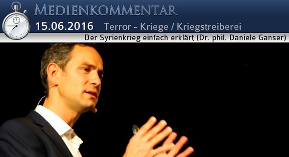 In einem Vortrag am 30. Mai 2016 gab der Schweizer Historiker und Friedensforscher Dr. phil. Daniele Ganser eine mögliche und einfache Antwort auf die Ursache des Syrienkrieges.