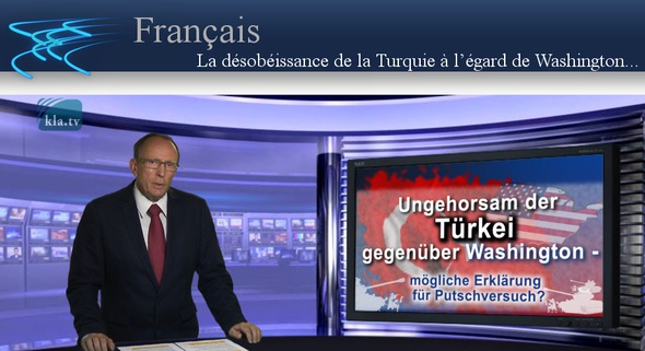 La tentative de putsch échouée en Turquie du 15 juillet 2016 peut avoir été un signal à Erdogan, puisqu’il aurait désobéi aux autorités des Etats-Unis. C’est ce qu’estime l’Allemand Christoph Hörstel spécialiste en politique extérieure dans une interview de la station de radio ParsToday - autrefois « Iran German Radio » (www.kla.tv / 8657). Citation de Hörstel : "C'est la politique de Washington : ici on ne discute pas, ici on ne s’embarrasse pas non plus d’amitié, ici il ne s'agit pas de partenariat, ici il s'agit clairement d'obéissance..."