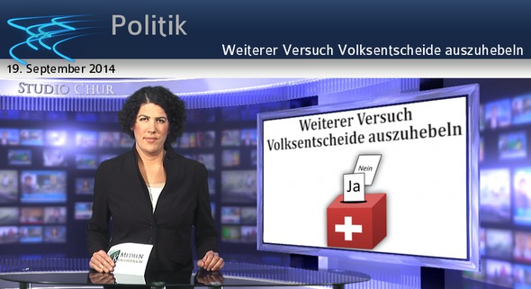 Heute geht es darum aufzuzeigen, wie schleichend weitere Versuche stattfinden um die Volksentscheide auszuhebeln. Sie und viele andere Bürger aus der Schweiz dürfen Jahr für Jahr immer wieder an die Urne gehen, um durch Abgabe ihrer Stimme mitentscheiden dürfen an wichtigen Ereignissen in der Schweiz. Es ist genau geregelt, wie es zu einem Abstimmungs-Ergebnis kommt. Ist dies entschieden, sollte es zur Umsetzung kommen. Unsere Volksentscheide jedoch werden inzwischen, wie ein bekanntes Beispiel zeigt, hinter dem Rücken des Volkes schleichend ausgehebelt. So versprach unter anderem Bundesrätin Simonetta Sommaruga an einer Pressekonferenz am 20. Juni 2014 dem Stimmbürger die „buchstabengetreue“ Umsetzung der vom Schweizer Volk angenommenen Volksinitiative „gegen die Masseneinwanderung“ vom 9. Februar 2014. Wir wissen, seit der Abstimmung ist es ein vieldiskutiertes und heikles Thema, aber dem Volk gegenüber hat sich Frau Sommaruga an der Pressekonferenz so geäussert. Nun wurde aber genau zwei Tage später bekannt, dass im Bundeshaus eine „geheime“ Arbeitsgruppe mit der Aufgabe betraut wurde, Mittel, Wege und Schleichwege zu finden um Abstimmungsresultate wie das „Ja gegen die Masseneinwanderung“ ein für alle Mal zu verunmöglichen. Dieselbe Bundesrätin, welche den Volksentscheid „buchstabengetreu“ umzusetzen verspricht, will also gleichzeitig dem Stimmbürger hinterrücks die Flügel stutzen? Lieber Zuschauer und liebe Zuschauerin, ein solches Komplott gegen den Stimmbürger ist in jeder Form von Demokratie zutiefst unwürdig! Mit dieser Information verabschiede ich mich aus dem Studio Chur und übergebe an meine Kollegin in Bern.