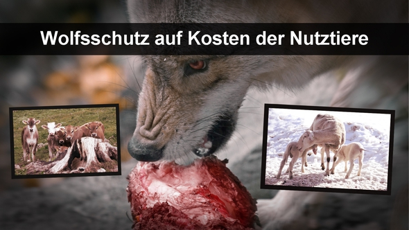 Im Raum der europäischen Alpenländer sind im Jahr 2015 erwiesenermaßen über 10.000 Nutztiere (Schafe, Kühe, Pferde usw.) vom Wolf gerissen worden. Dies auf eine Art und Weise, wie kein dem Tierschutz verpflichteter Schlachthof es täte. Trotz diesen grauenvoll getöteten Nutztieren wird europaweit der Wolfsschutz gerade durch Organisationen wie Pro Natura, WWF und Naturschutzbund NABU weiter verstärkt und zehntausende tote Nutztiere einfach so hingenommen. Alleine in der Schweiz wurden im Jahr 2016 364 Schafe, 23 Ziegen und zwei Kälber gerissen – tote Wölfe gab es nur fünf an der Zahl. Wie kann es sein, dass führende Tierschutzverbände dieses krasse Missverhältnis und dieses grausame Verenden zahlreicher Tiere im Namen des Tierschutzes bewusst in Kauf nehmen?